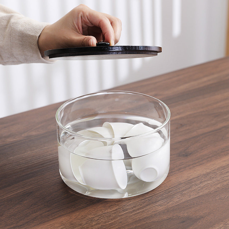 耐热玻璃消毒锅电陶炉可煮杯缸y小号带盖子茶洗水盂水洗茶渣玻璃