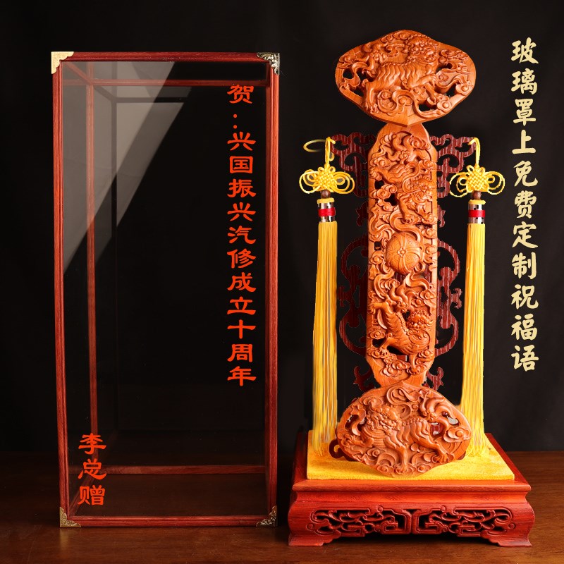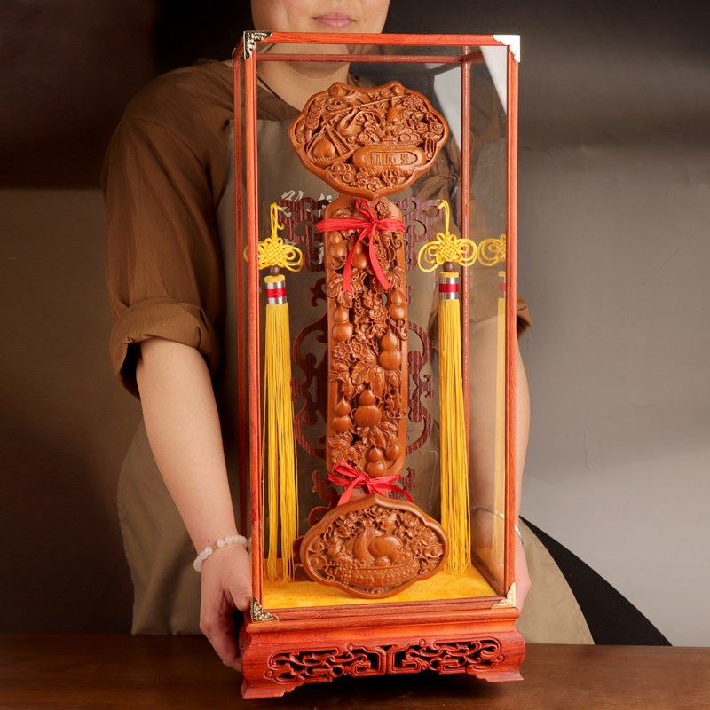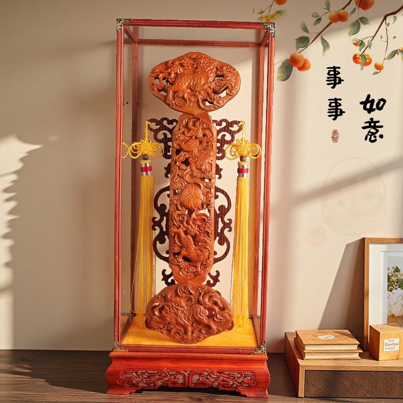 桃木如意客厅摆件实木雕刻镇宅招财立式落地办公室装饰品乔迁送礼