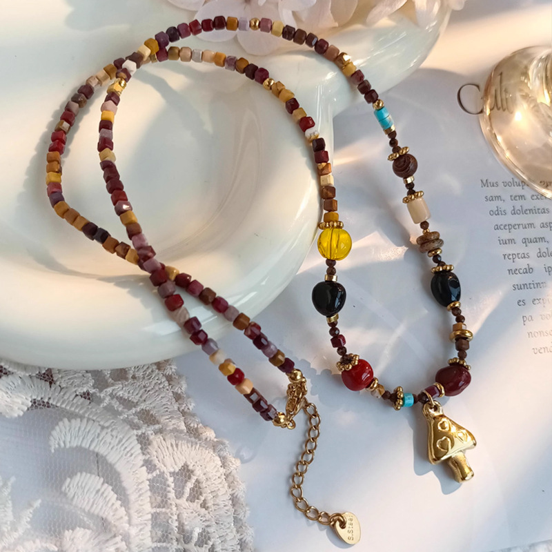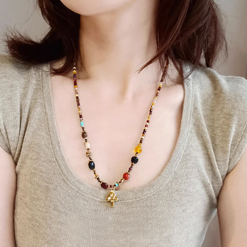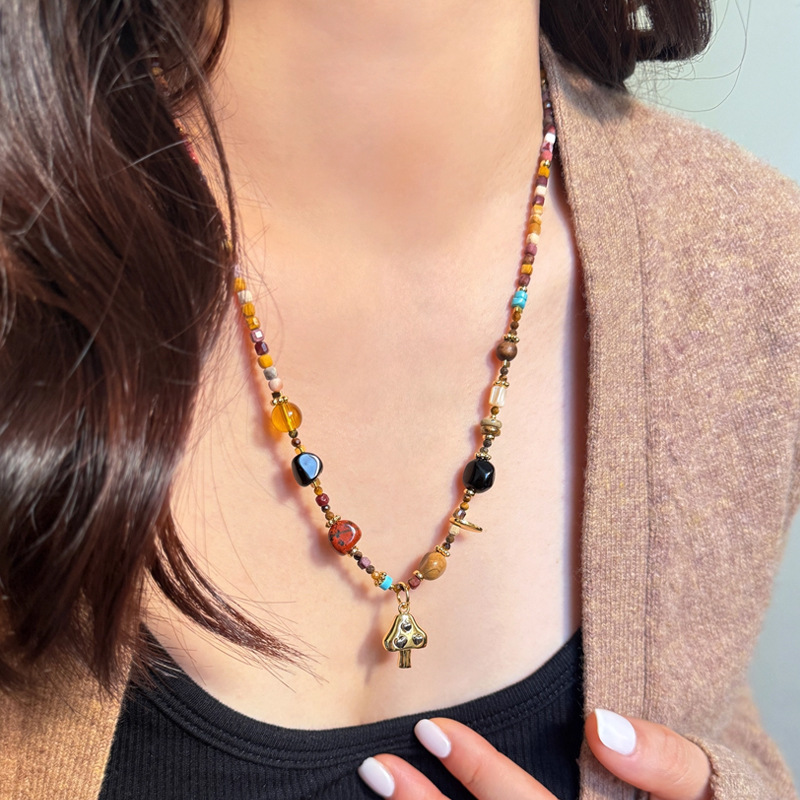 蘑菇串珠项链长款秋冬毛衣链配饰女轻奢小众高级感新中式复古饰品