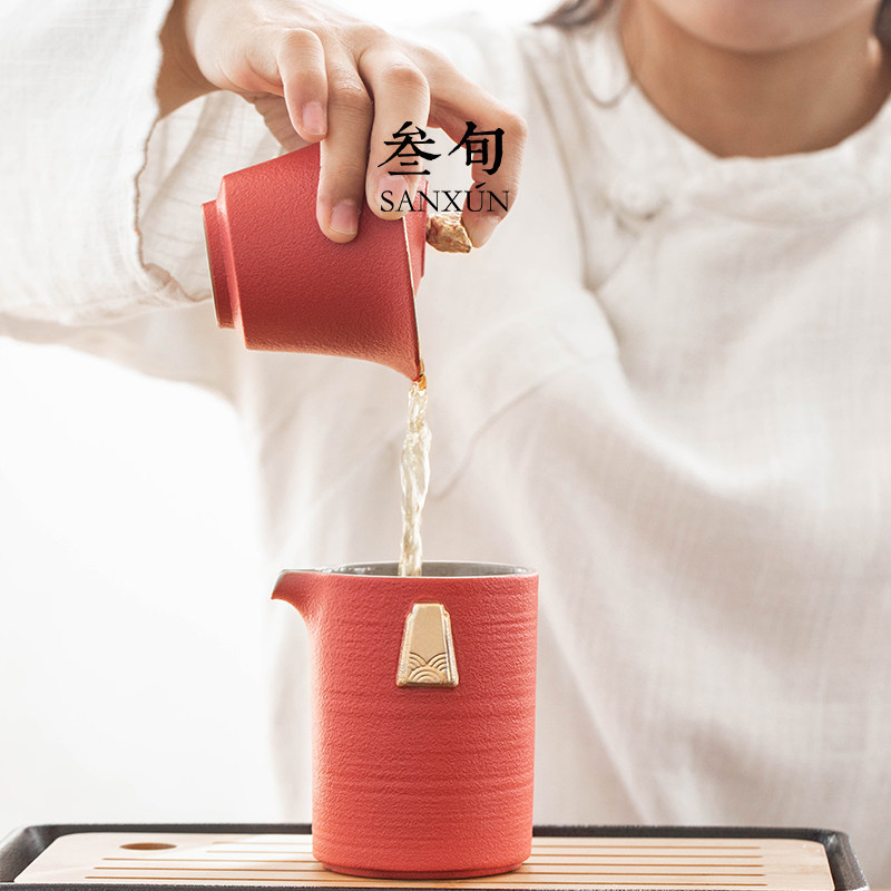 叁旬宫廷红三才盖碗家用单个描金