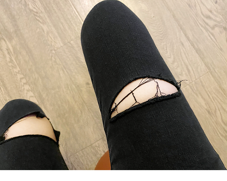 黑色破洞牛仔裤女ins8分宽松显瘦