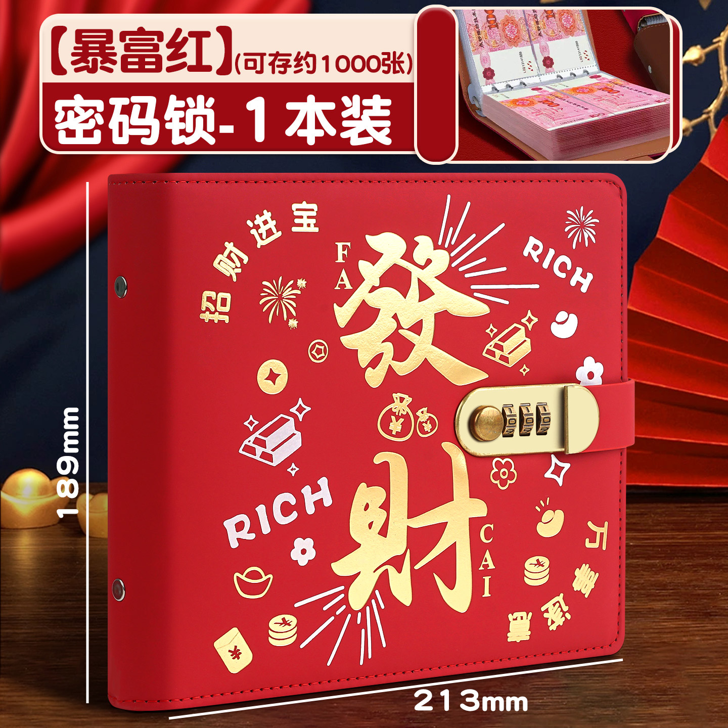 存钱本存钱夹2025新款大容量现金存钱本密码锁钱包可放现金收纳包收藏册理财神器收纳册红包款百元钞票册袋D1