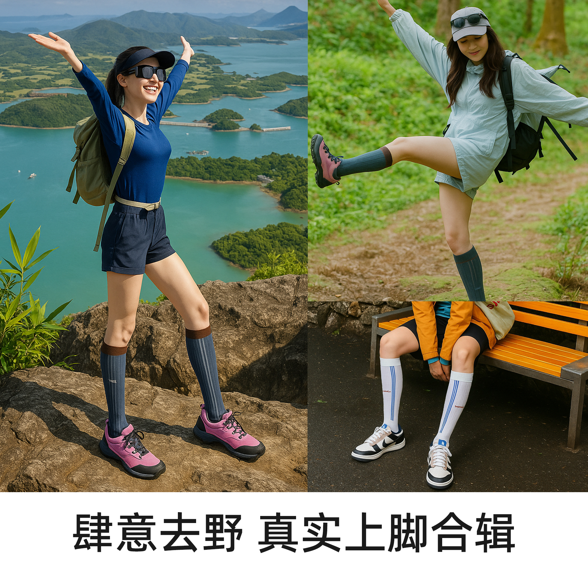登山袜子女长筒袜专业户外徒步健身运动加压骑行跑步高筒小腿长袜