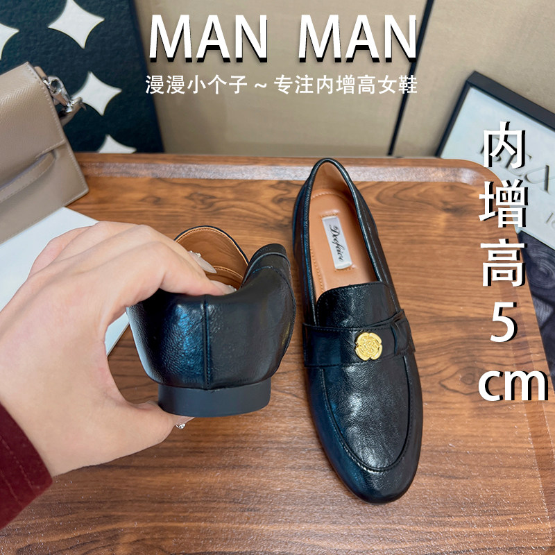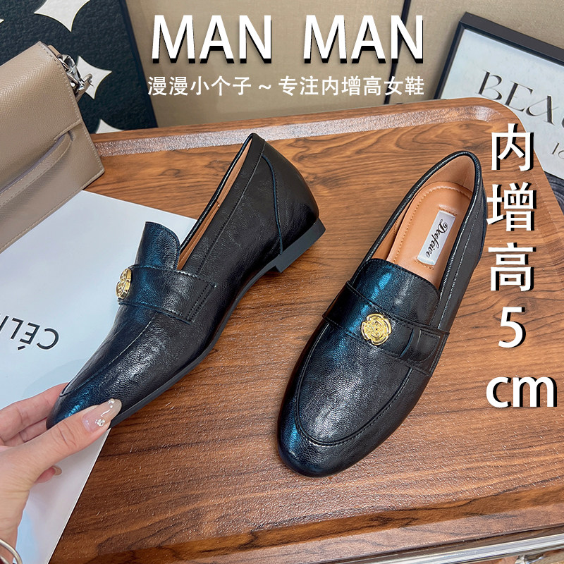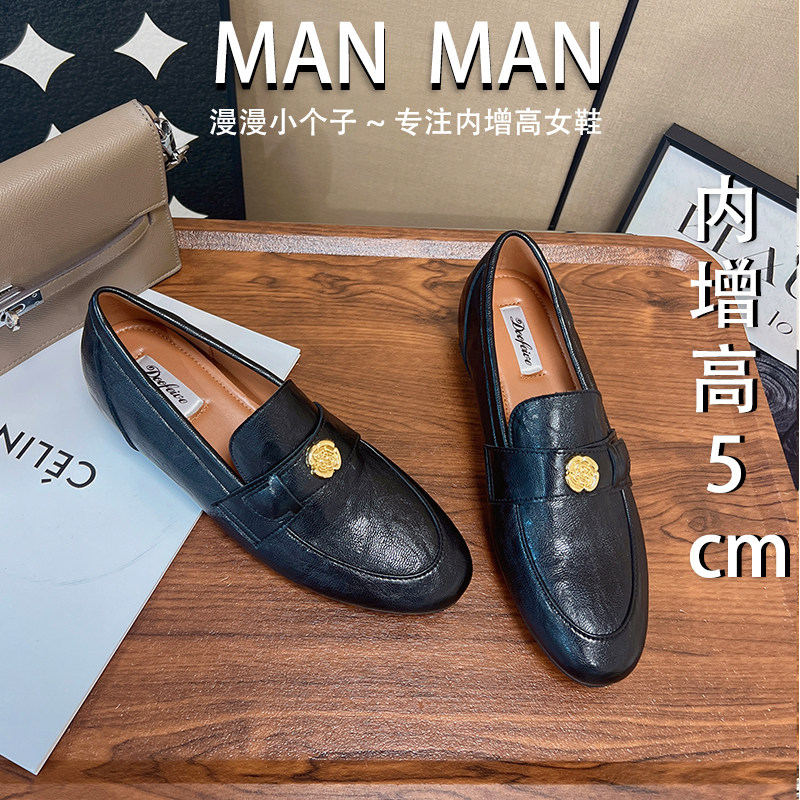 漫漫小个子内增高法式复古圆头单鞋女英伦风小皮鞋乐福鞋平底鞋女