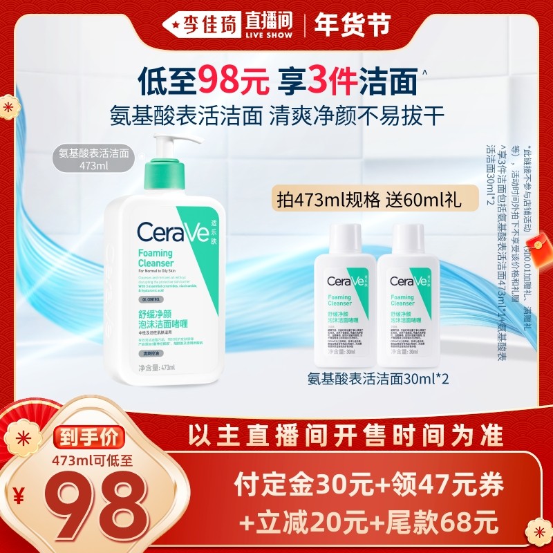 【李佳琦年货预售美妆节】CeraVe适乐肤氨基酸表活敏肌洗面奶*