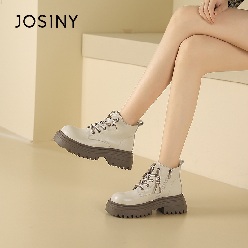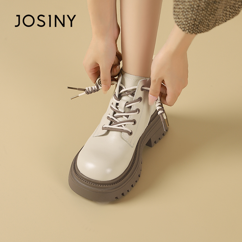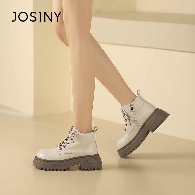卓诗尼粗跟马丁靴冬季新款英伦风显高靴子短筒靴百搭女小个子