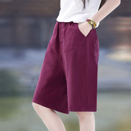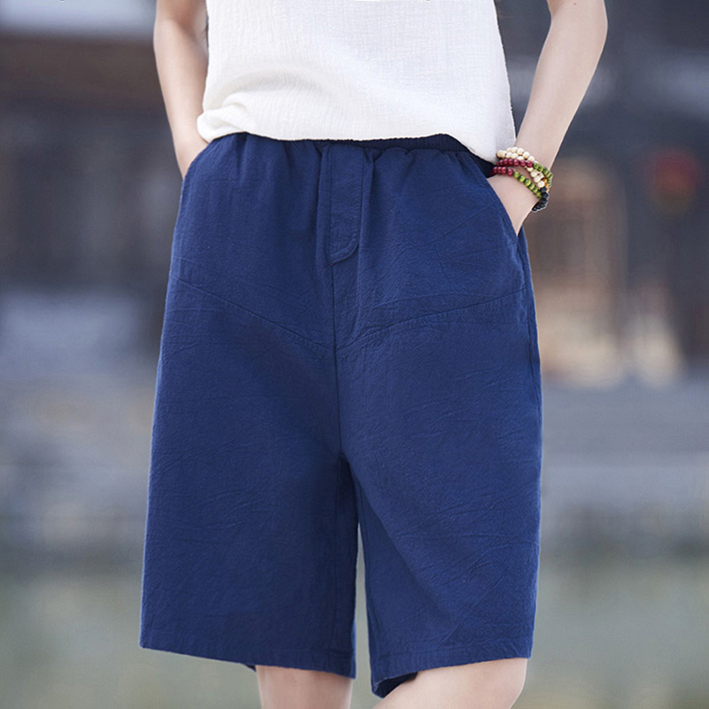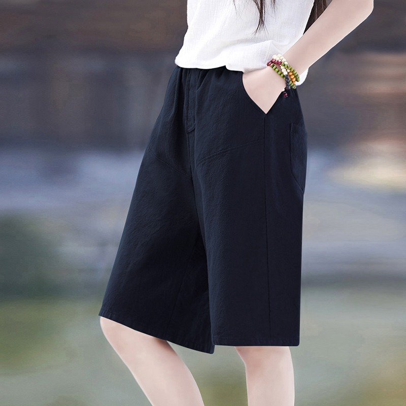 棉麻高腰直筒短裤女夏2025新款亚麻休闲中裤复古宽松阔腿裤五分裤