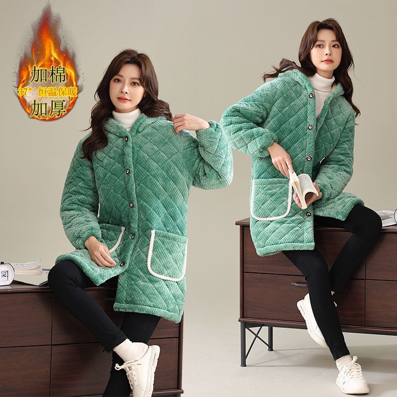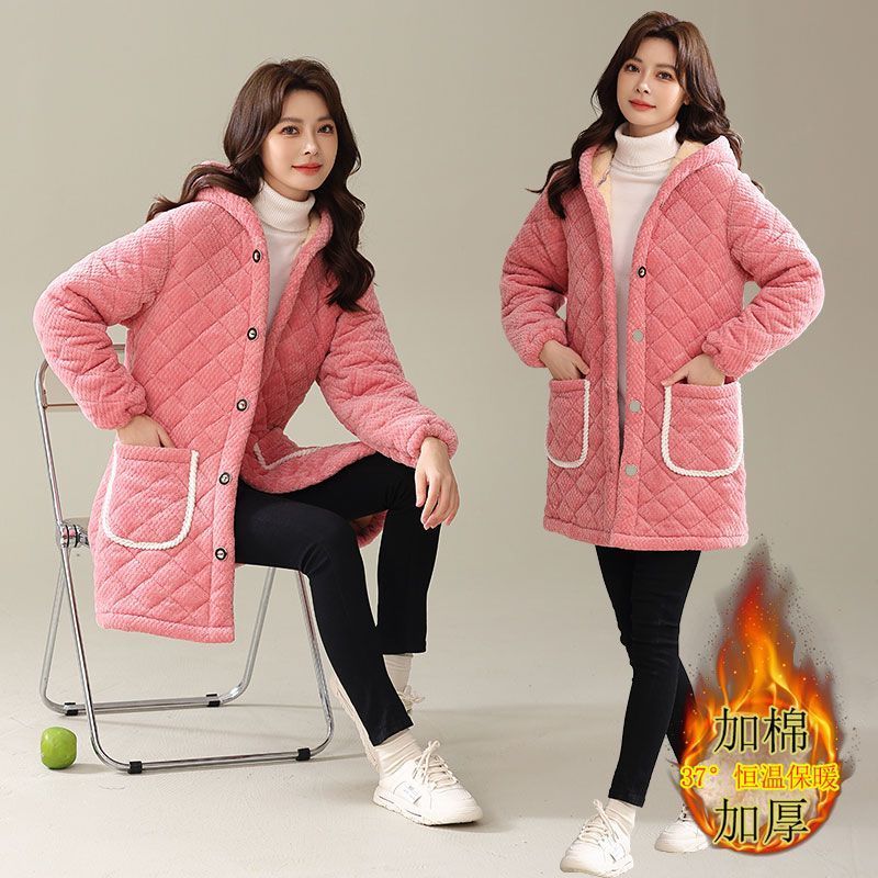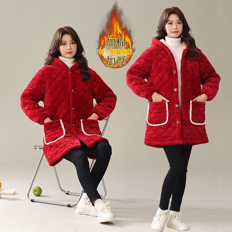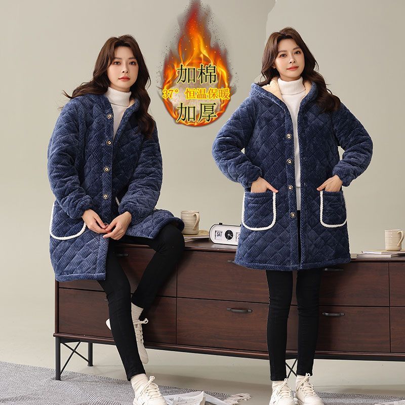 四川省服新款冬季罩衣加厚加绒棉衣女中长款三层厚款宽松外穿保暖
