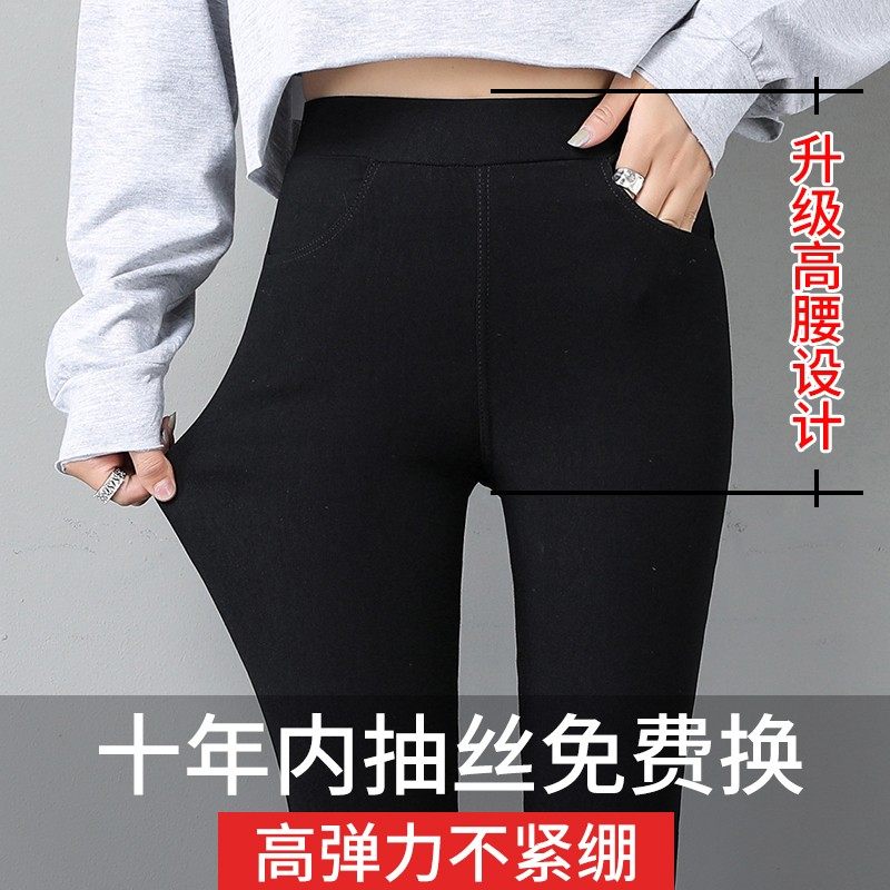 黑色裤子春秋季打底裤女外穿高腰显瘦弹力大码百搭小脚九分铅笔裤