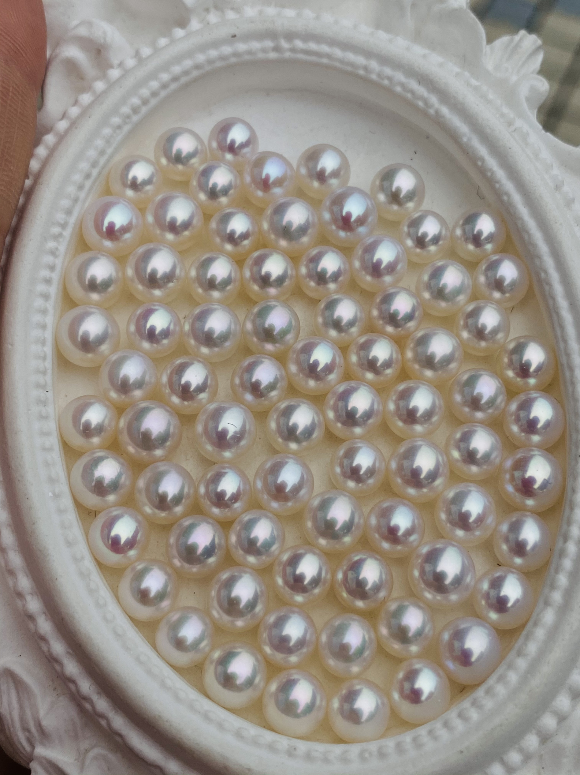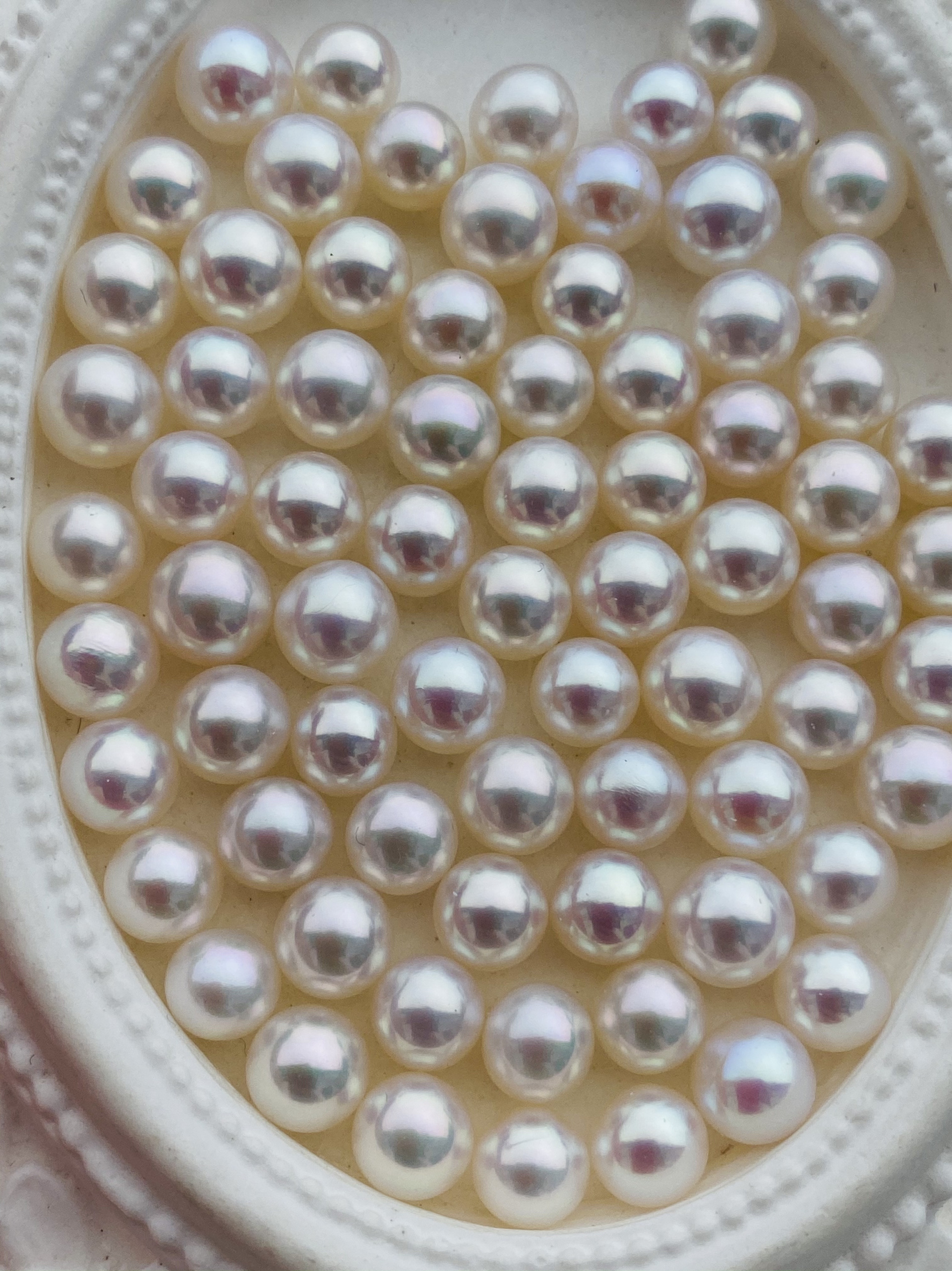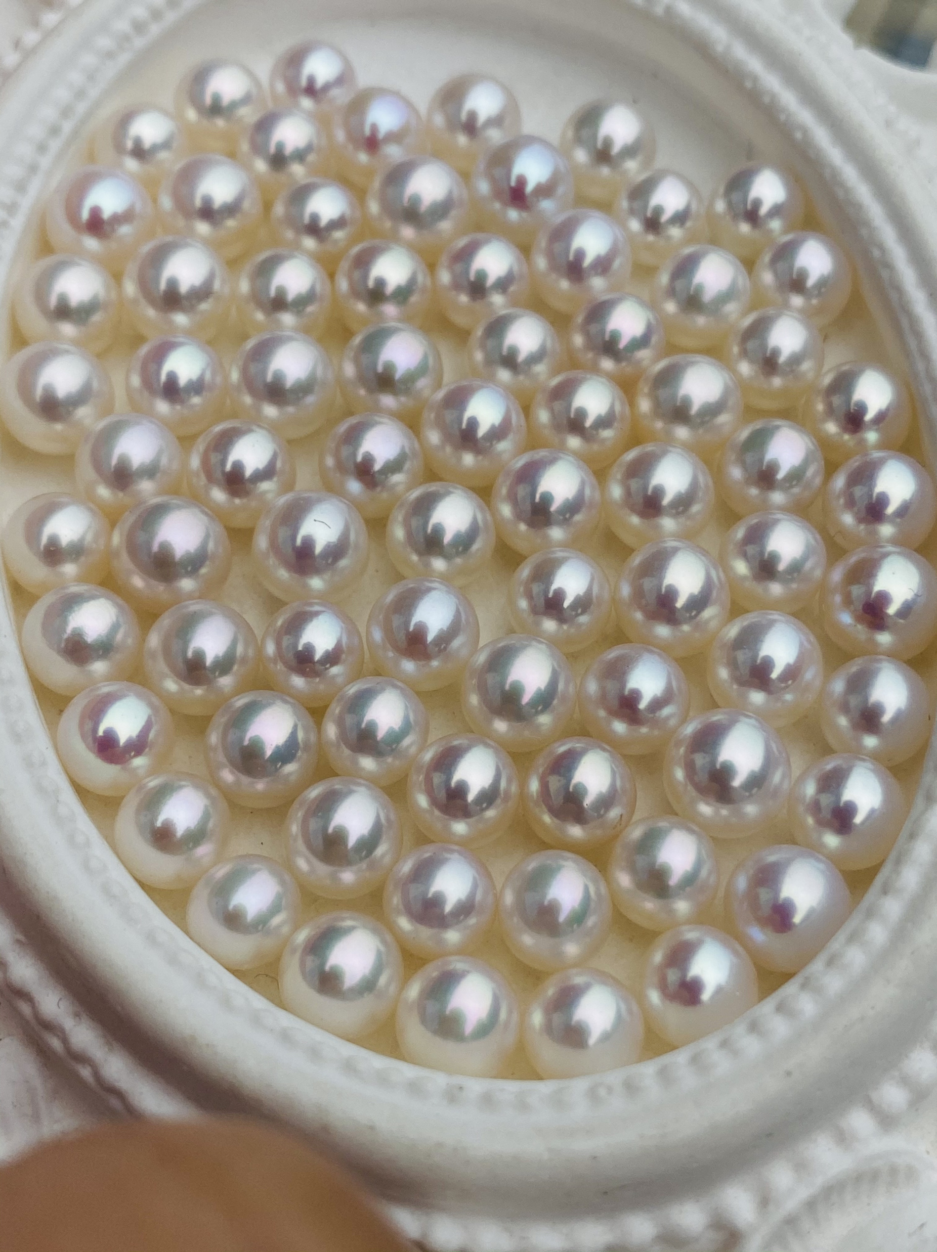 珍貅天然淡水ak珍珠极光白细胞6-8mm近正圆微微瑕半孔颗粒裸珠diy