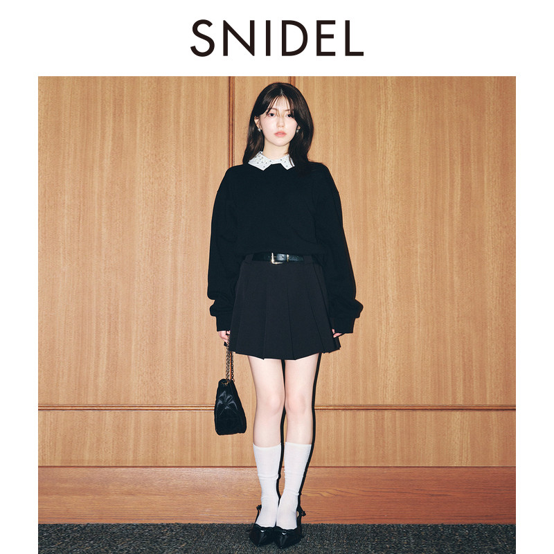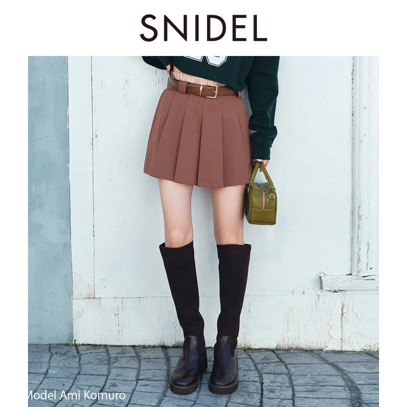 SNIDEL2025秋冬新品百搭百褶半身裙学院风短裙裤含腰带SWFP254279