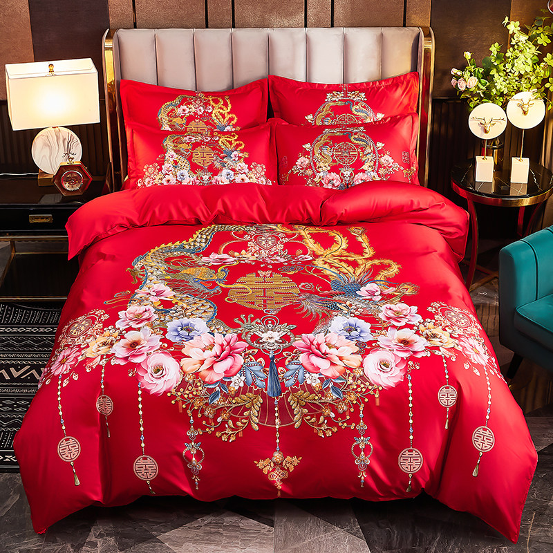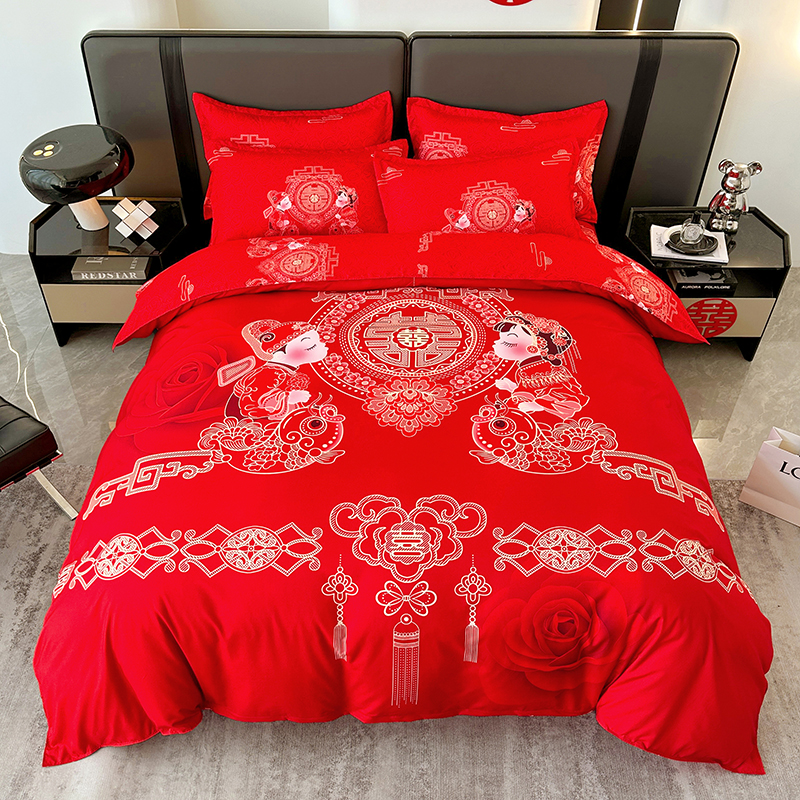 床上大红色新婚喜庆陪嫁四件套