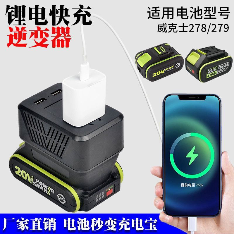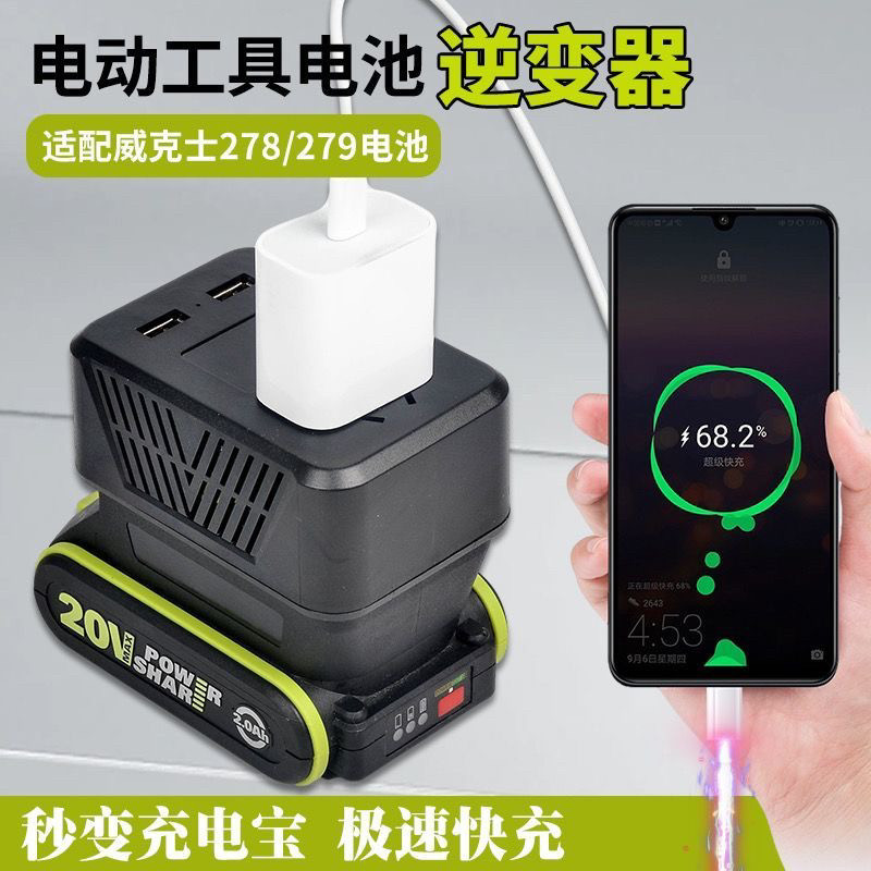 适配威克士大小脚锂电池逆变器充电宝小型20V转220VDIY智能变压器