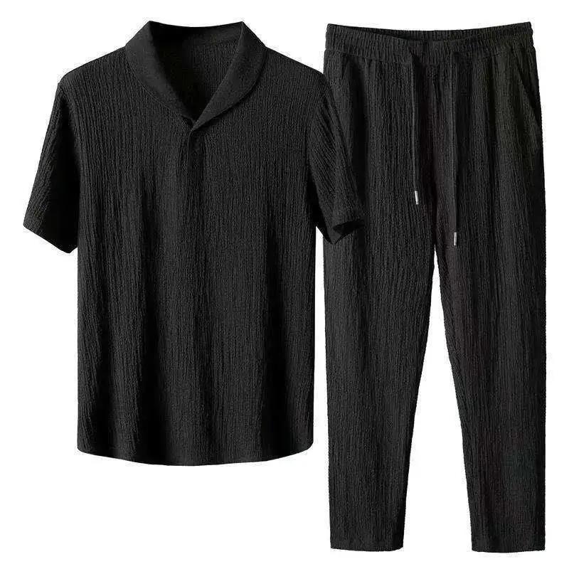 亚麻套装男夏季冰丝汉服搭