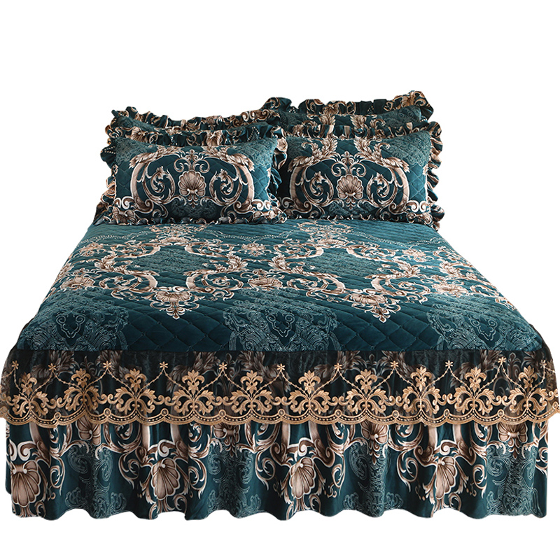 欧式夹棉水晶绒床裙床罩单件珊瑚绒床单加厚1.8x2.0x2.2m床套冬季