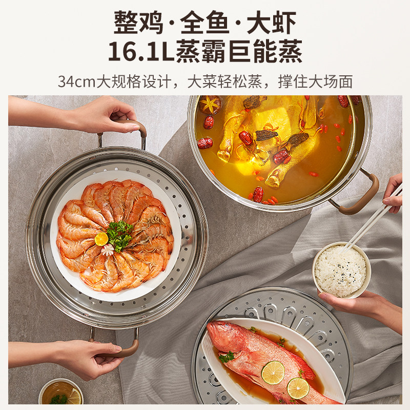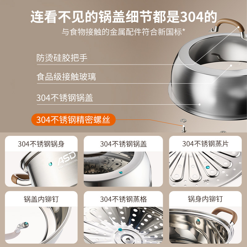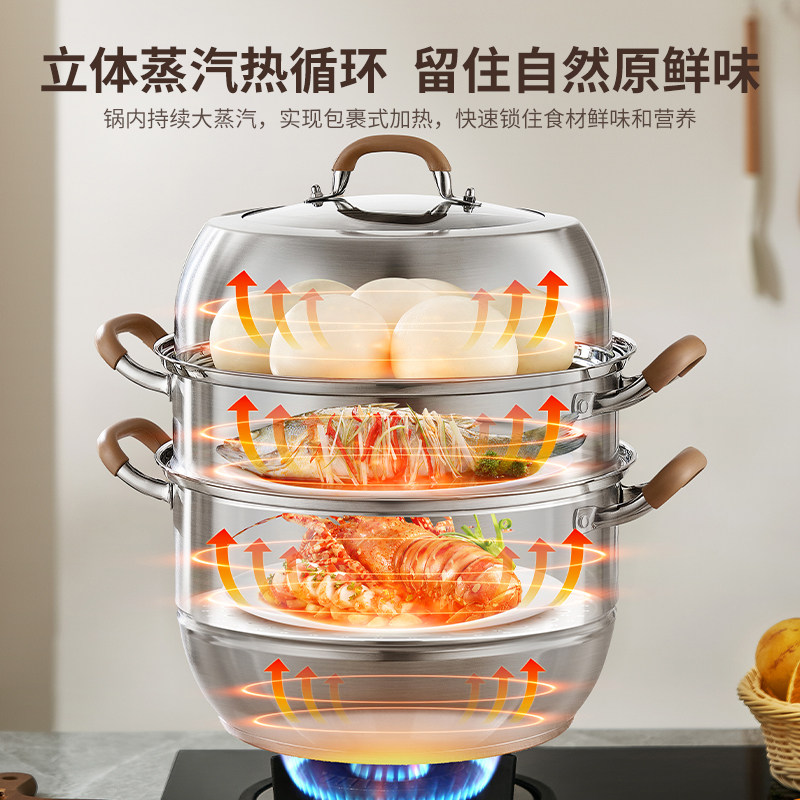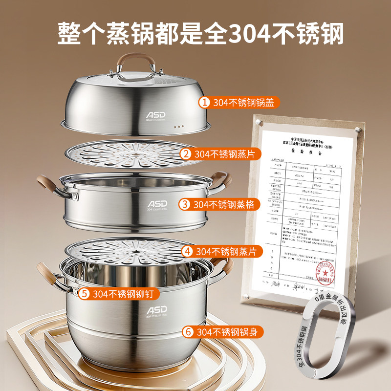 爱仕达蒸锅全304不锈钢家用三层加厚蒸笼馒头煮炖汤锅燃气电磁炉