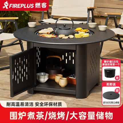 围炉煮茶家用庭院烤火炉木炭烧烤炉圆形茶桌室内取暖炉户外炭火炉