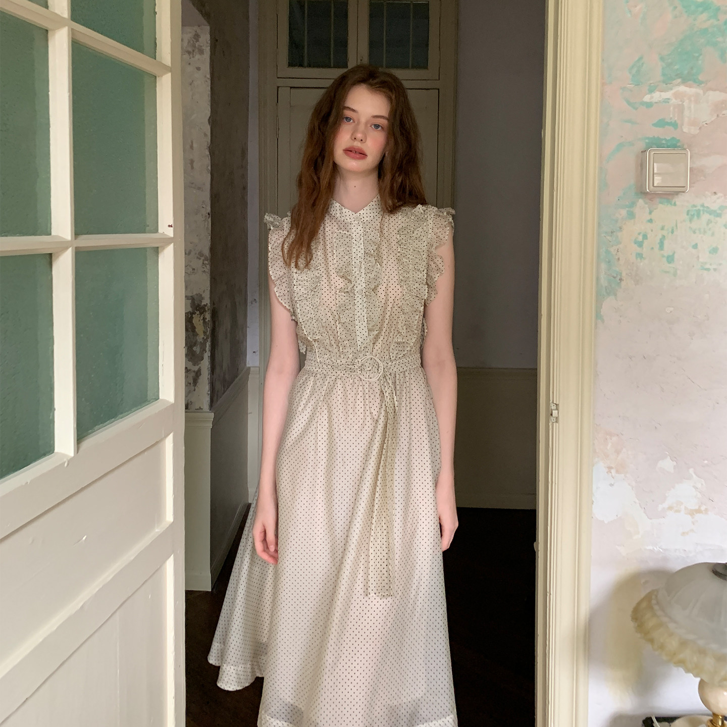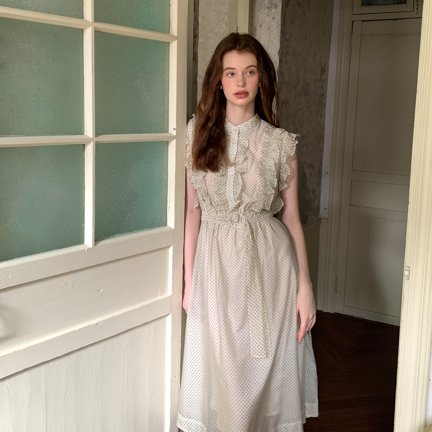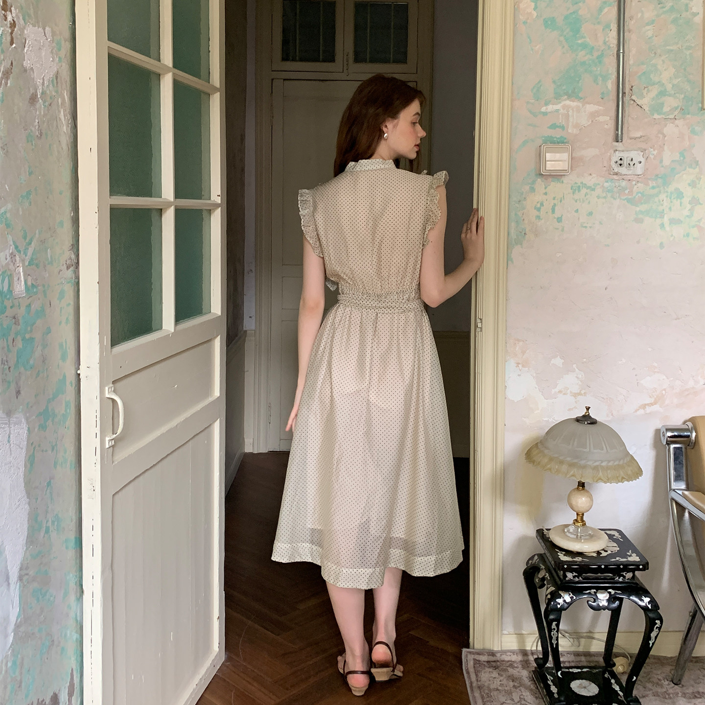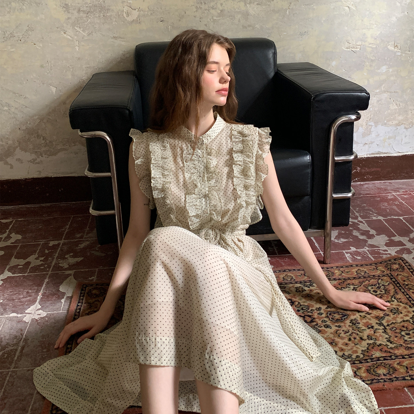ZHUYIYI 新款高级感茶歇系印花无袖连衣裙女夏收腰显瘦长裙