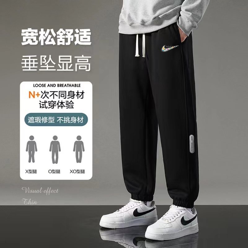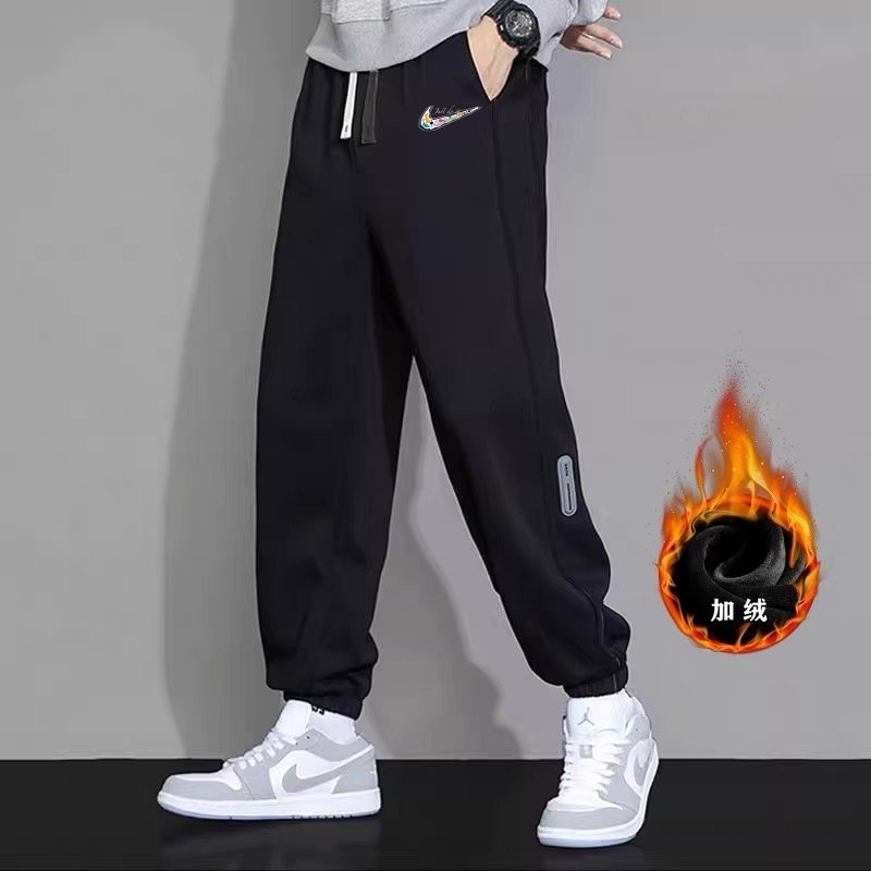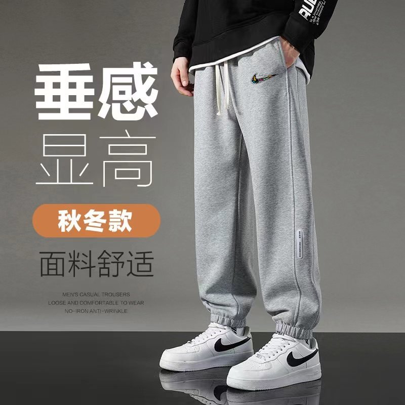 奥莱精选针织卫裤男秋冬季潮流百搭加绒加厚青少年休闲束脚九分裤