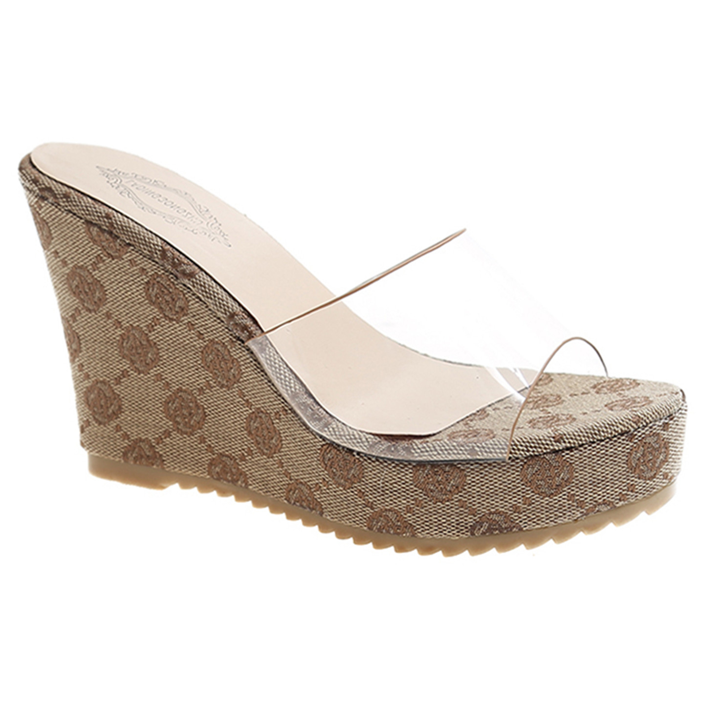 2025年夏季新款超火坡跟厚底透明一字拖女外穿超高跟休闲百搭凉拖