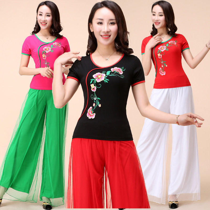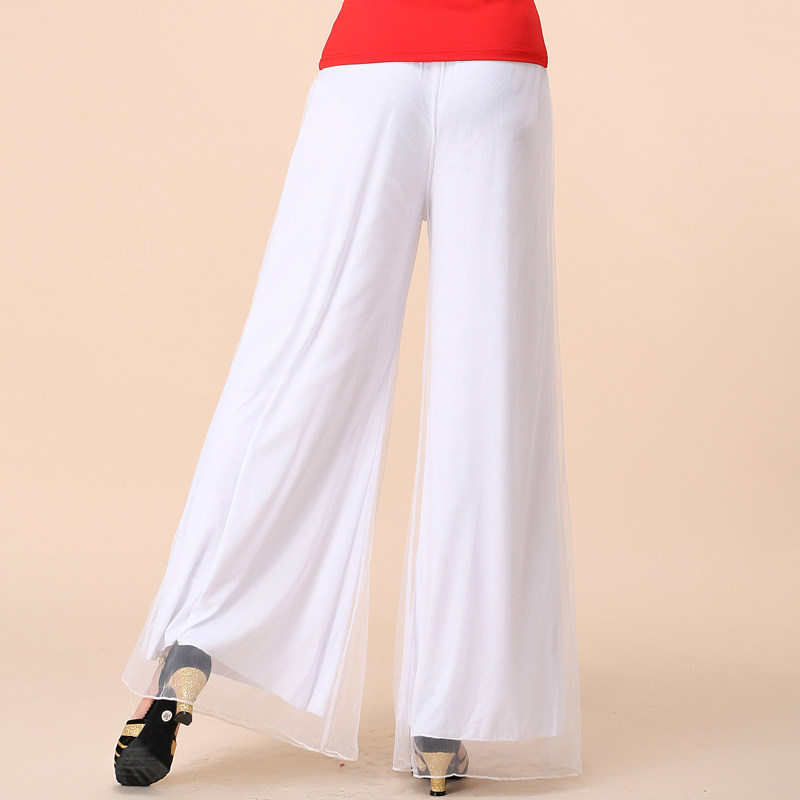 新款广场舞服装秋冬阔腿裤网纱长裤女演出练习舞蹈裤子跳舞喇叭裤