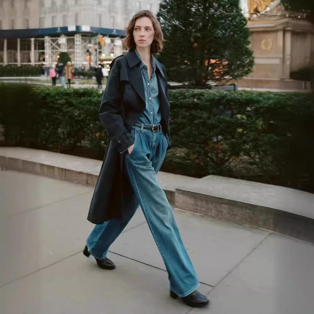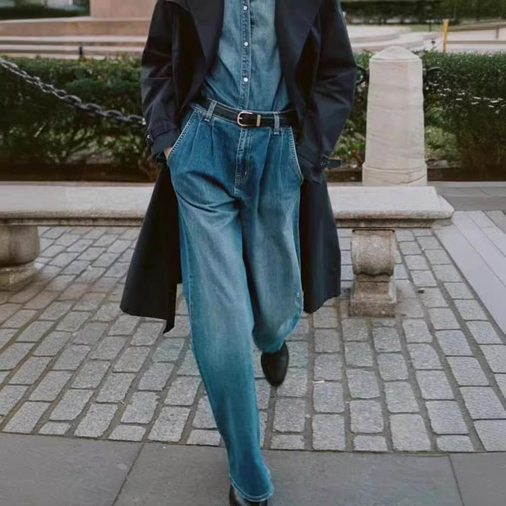 【现货】Rouje Life白百何同款褶裥设计休闲阔腿裤子宽松牛仔裤女