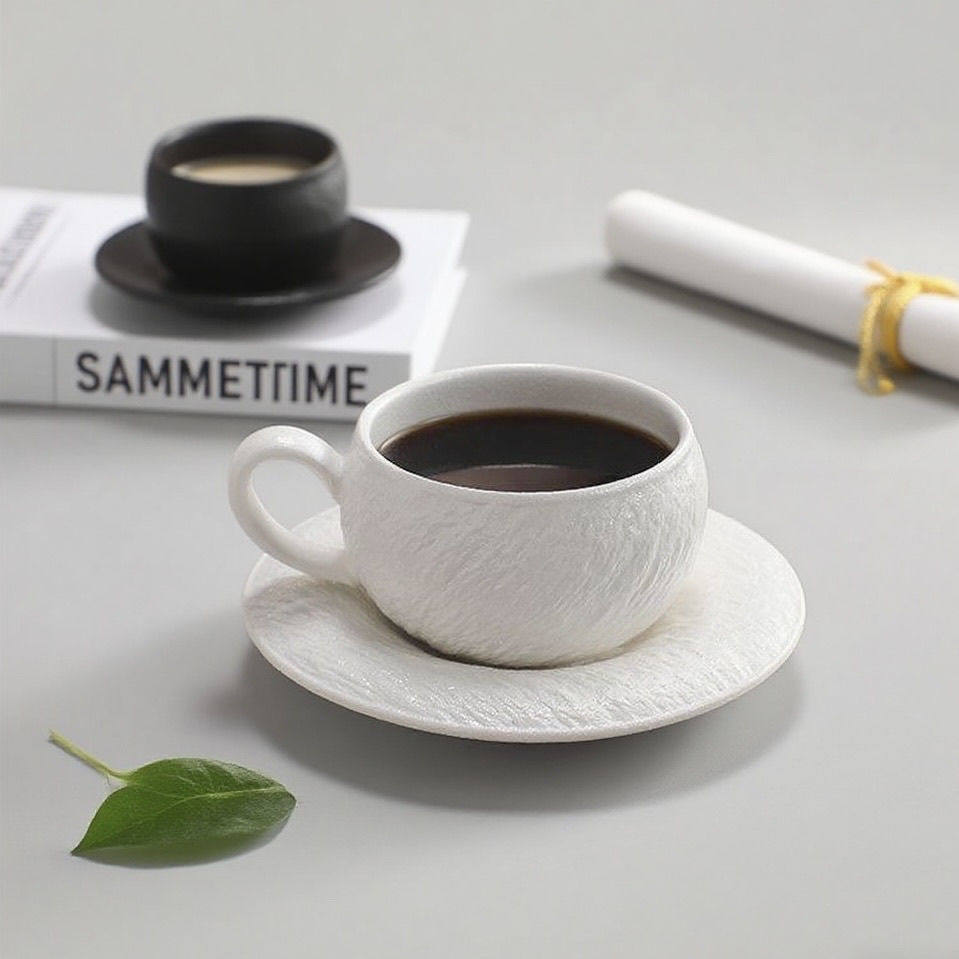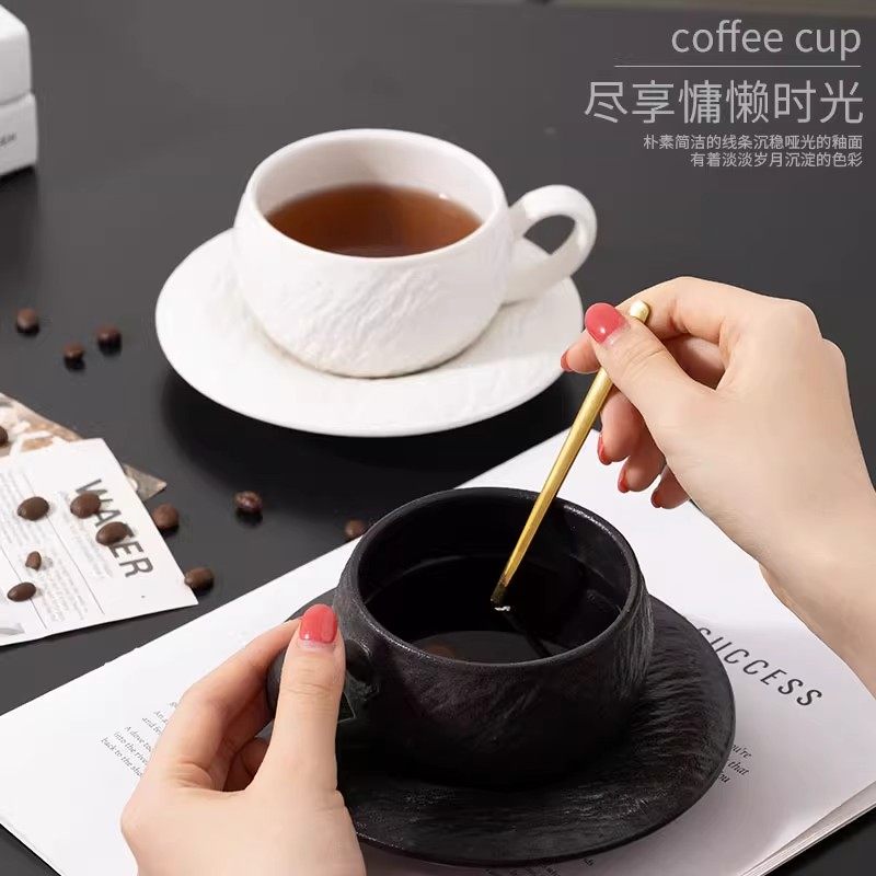 磨砂咖啡杯碟套装陶瓷拿铁拉花杯高级感下午茶杯家用小众喝水杯子
