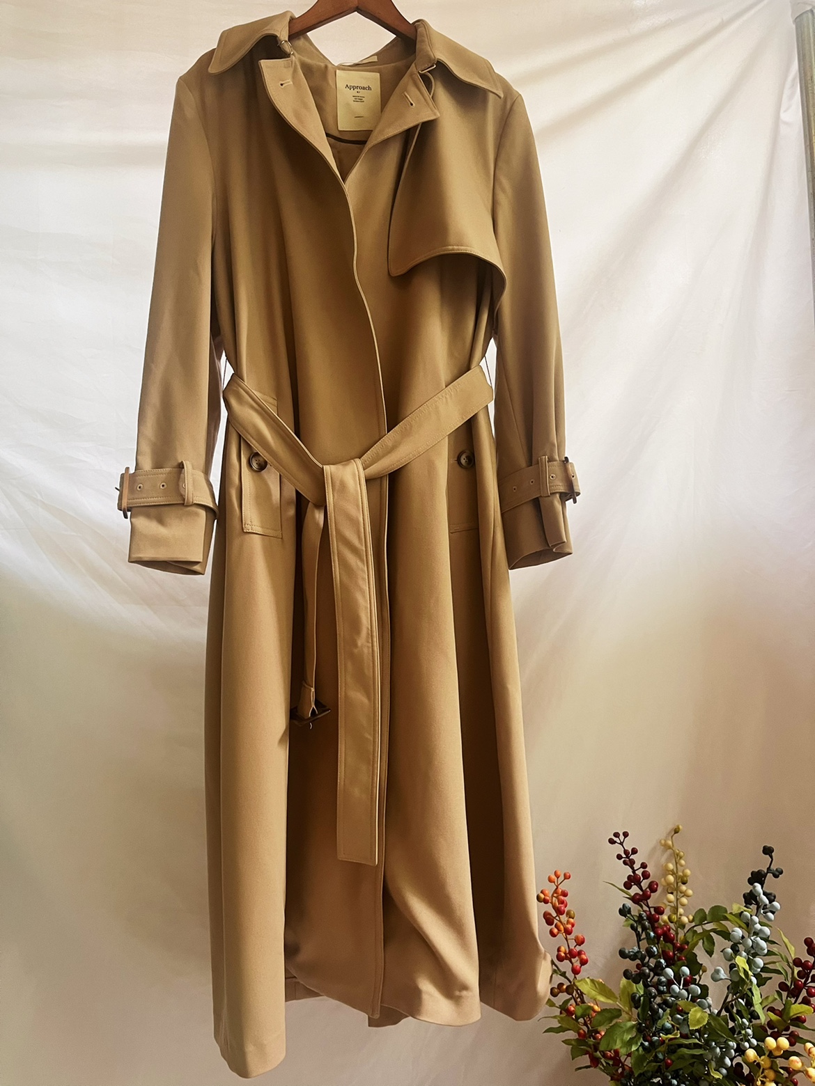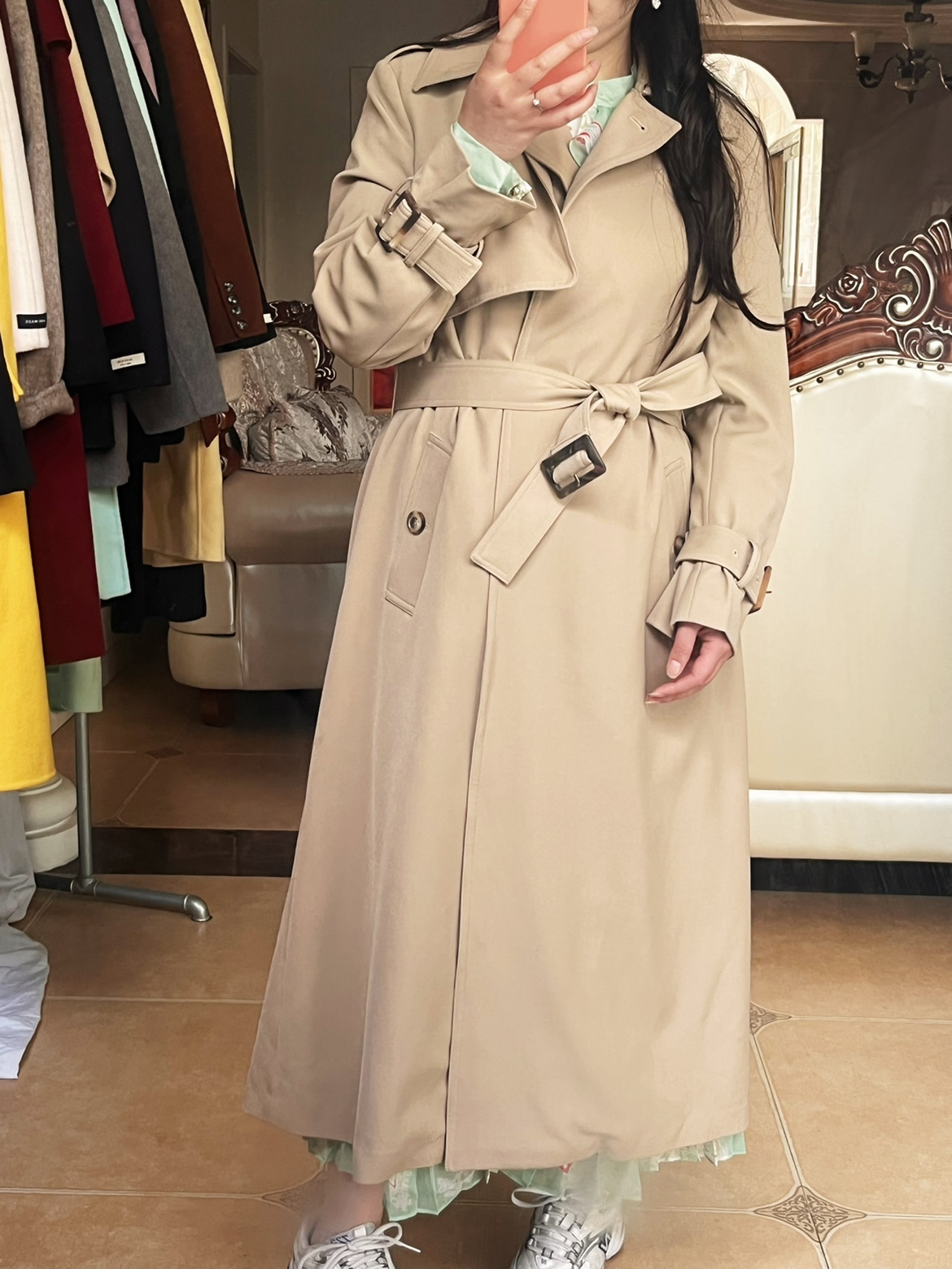 2025年秋中长款腰带风衣外套女百搭双排扣收腰高级感宽松通勤大衣