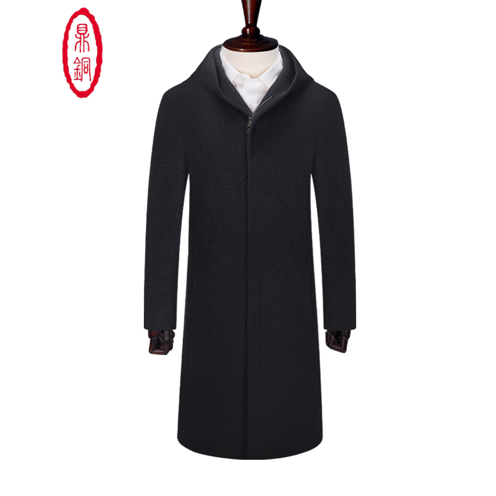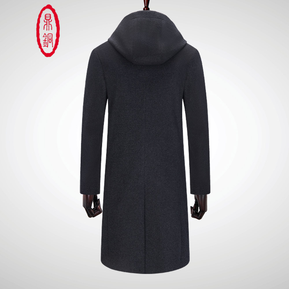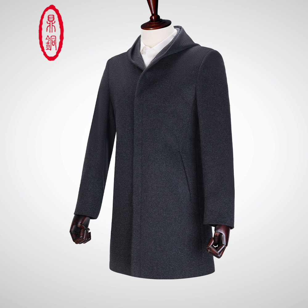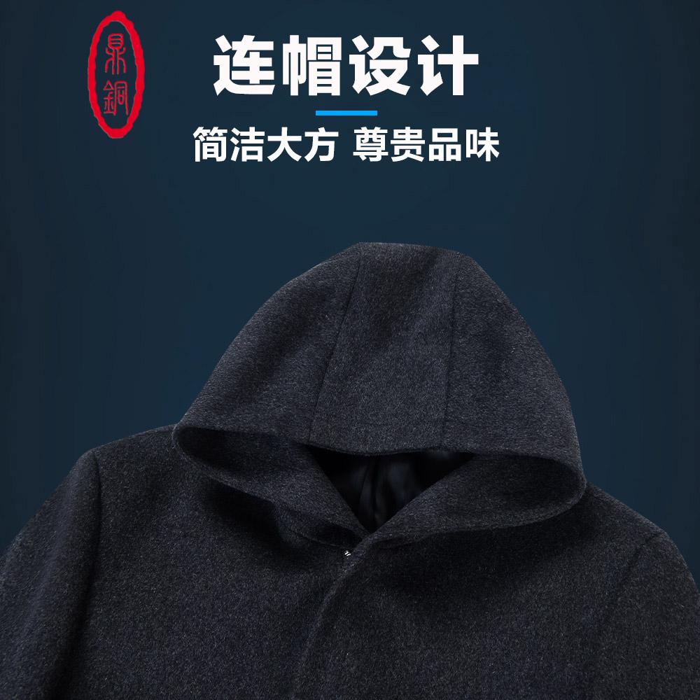 鼎铜连帽羊毛大衣男中长款中年男士商务休闲灰色秋冬季毛呢外套新
