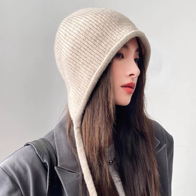 堆堆帽子女款春秋显脸小包头冷大头围月子帽抽绳卷边针织毛线冬季