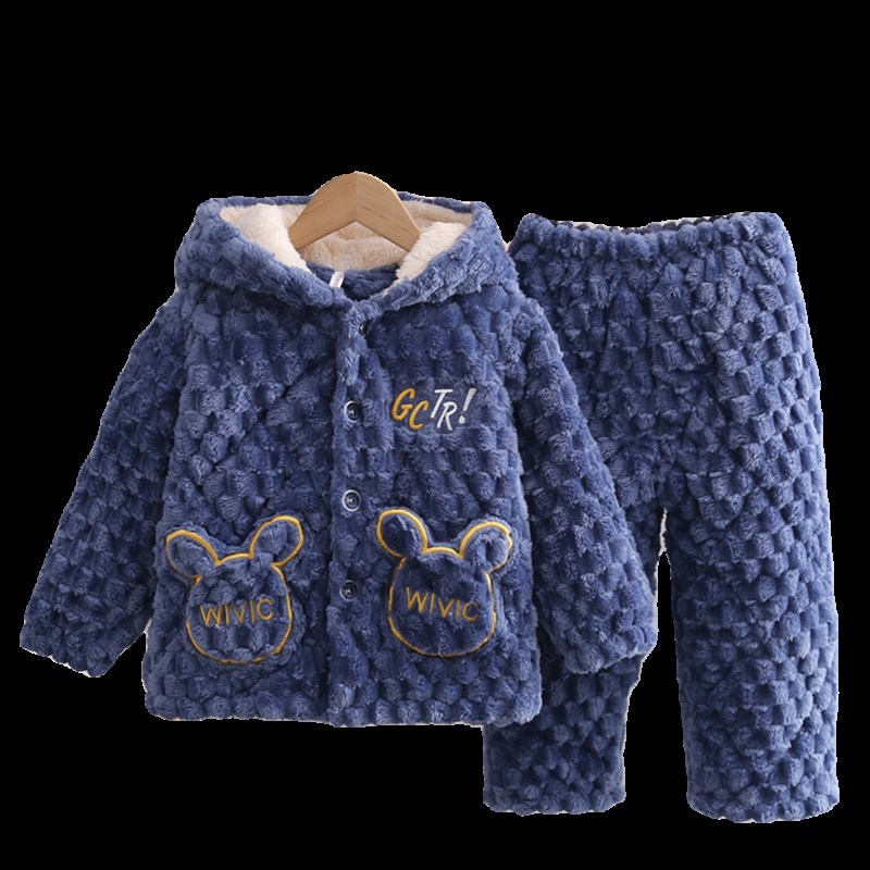 儿童睡衣男童冬季珊瑚绒夹棉三层加厚保暖法兰绒S大童男女孩家居
