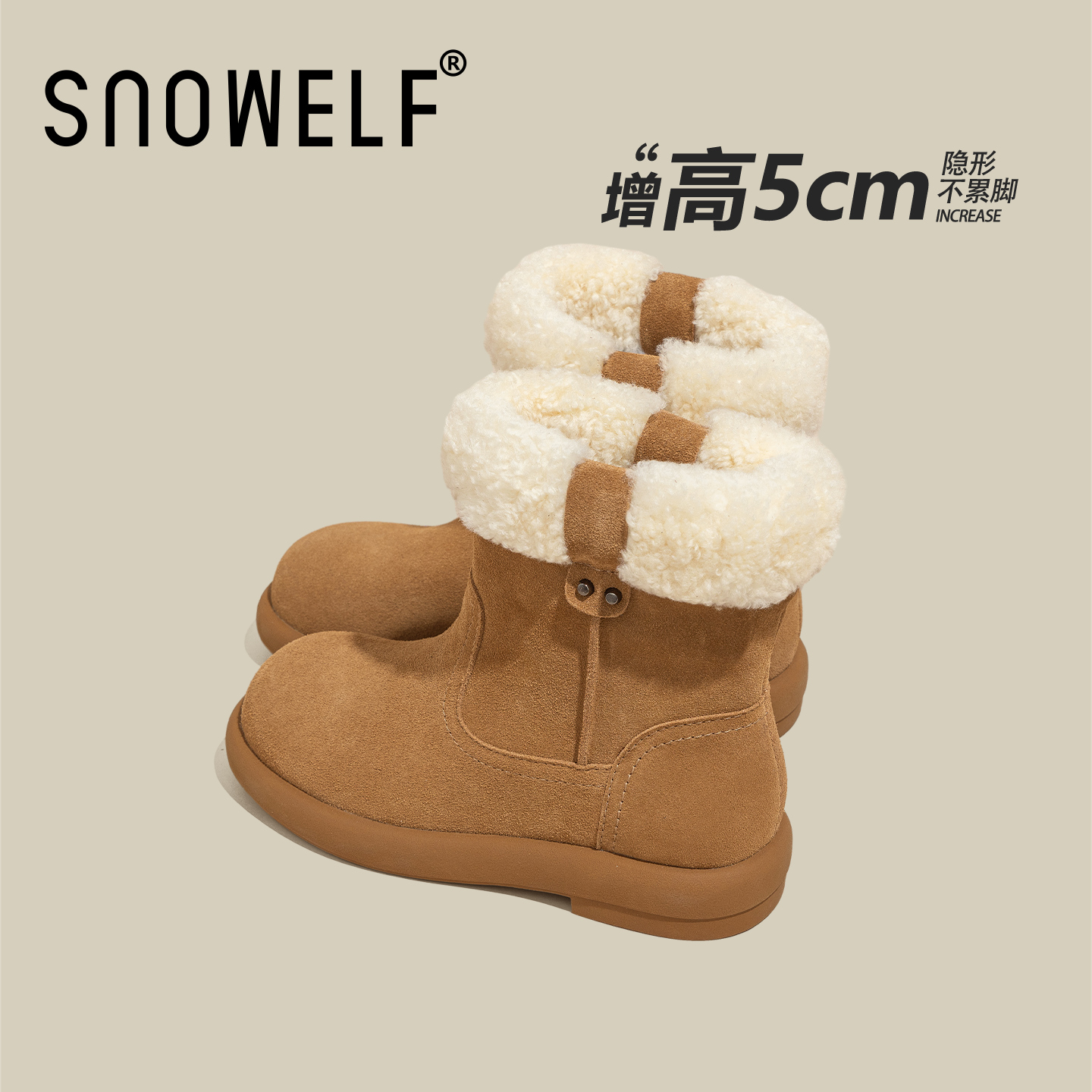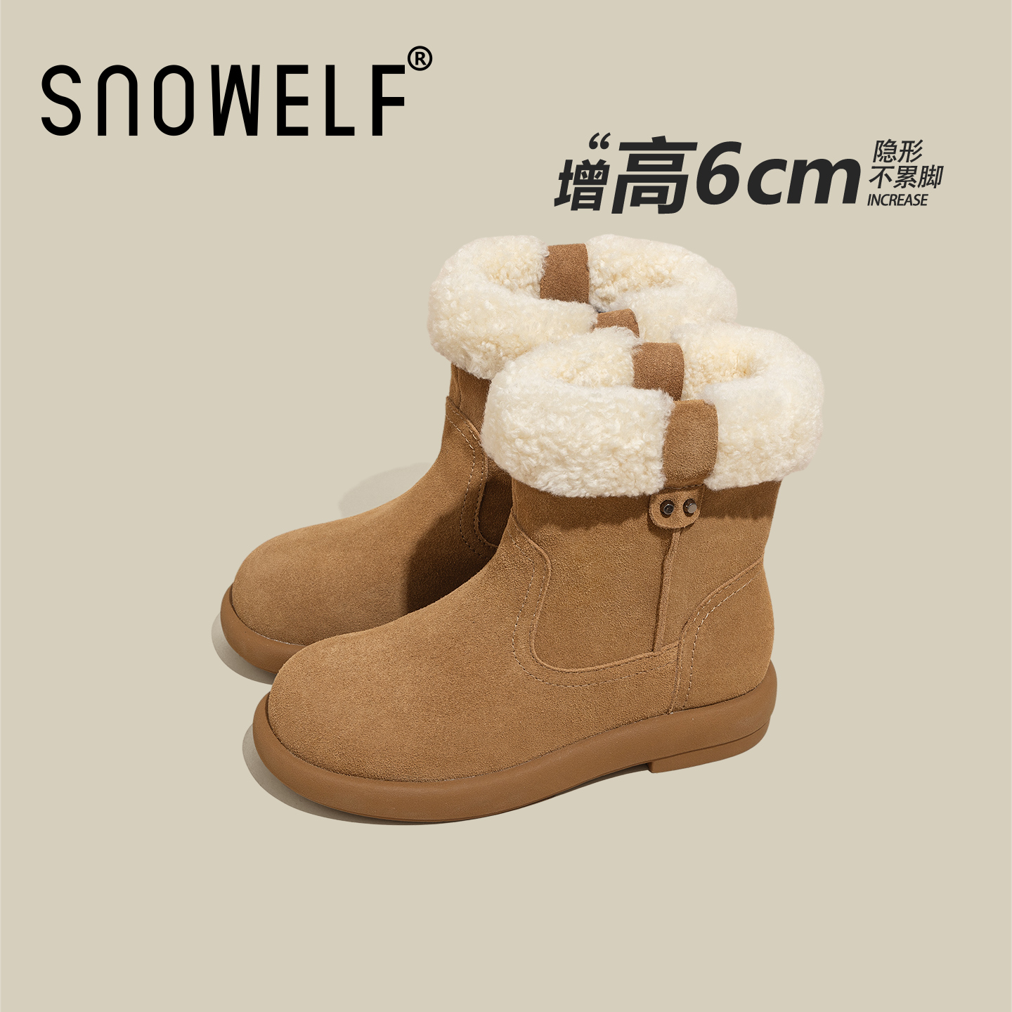 加绒加厚咖色厚底雪地靴女2025新款冬季松糕短筒保暖棉靴东北棉鞋