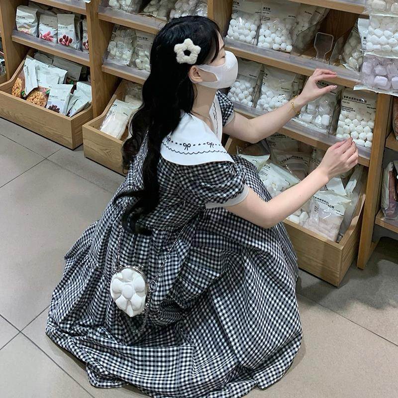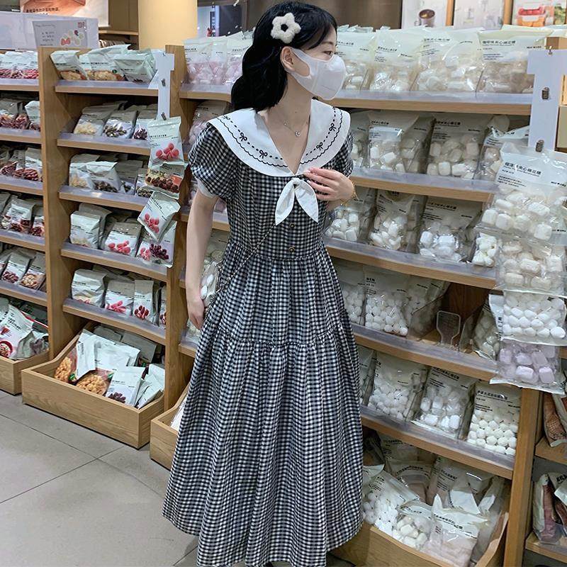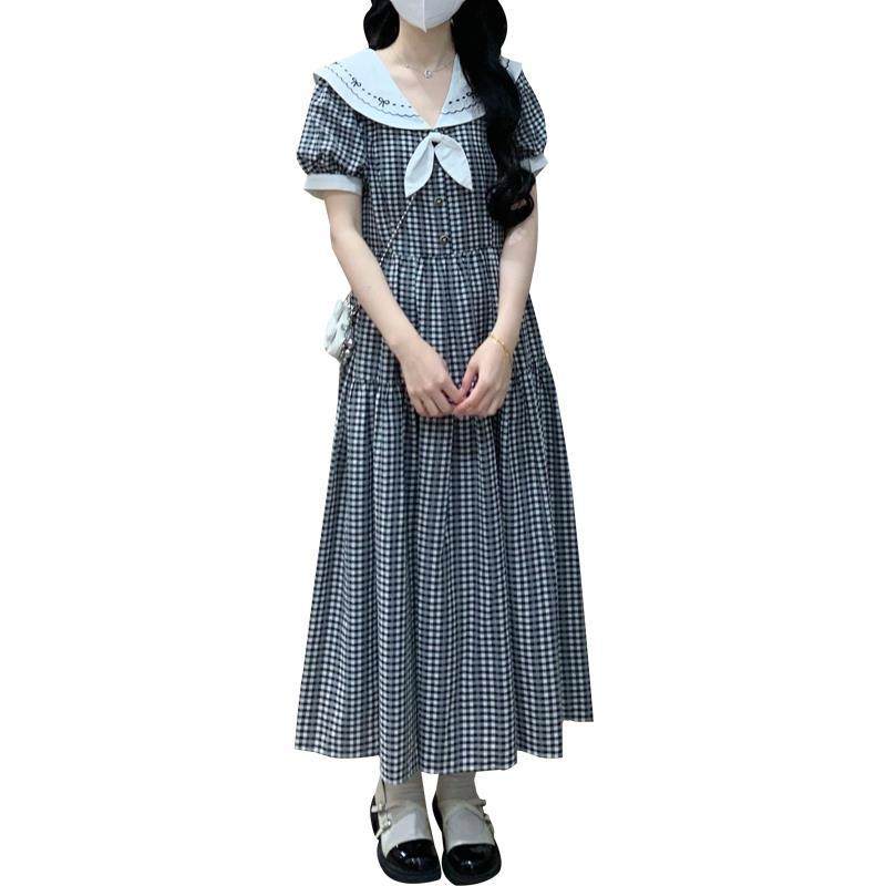 少女海军领复古格子连衣裙大童夏装2025新款初中高中学生长裙子甜