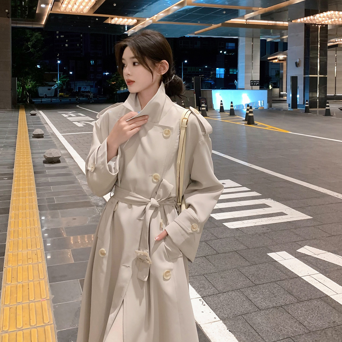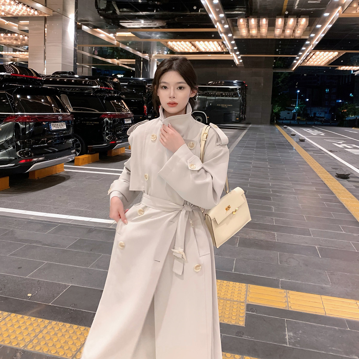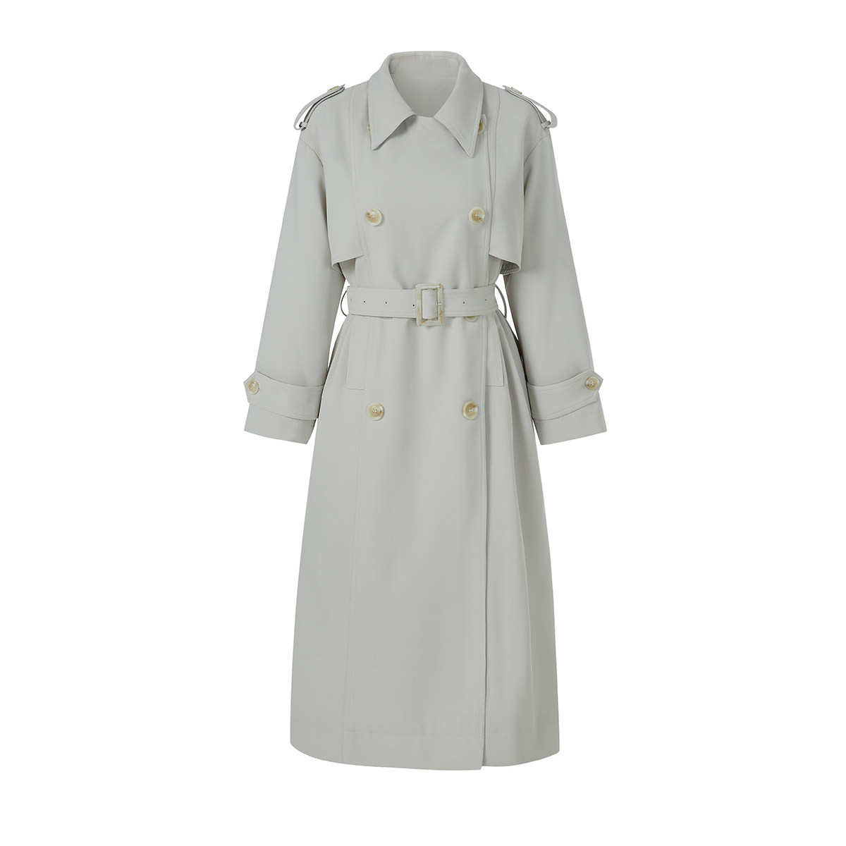 ByYou 秋冬新款垂感灰白色双排扣风衣外套女中长款高级感休闲大衣