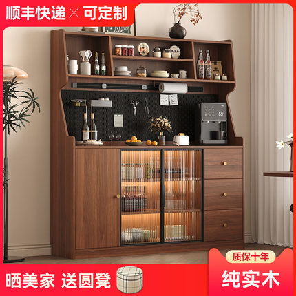 实木餐边柜一体靠墙高柜现代简约客厅酒柜茶水柜咖啡柜厨房收纳柜