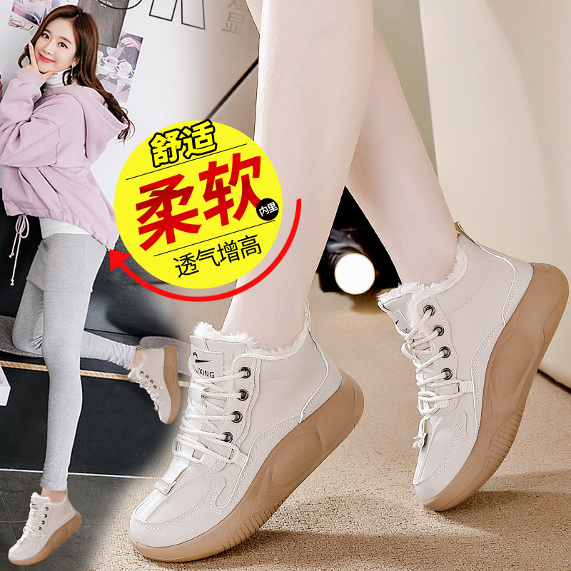 踩屎感真皮加棉保暖雪地靴女冬季加绒加厚高帮棉鞋轻便软底运动鞋