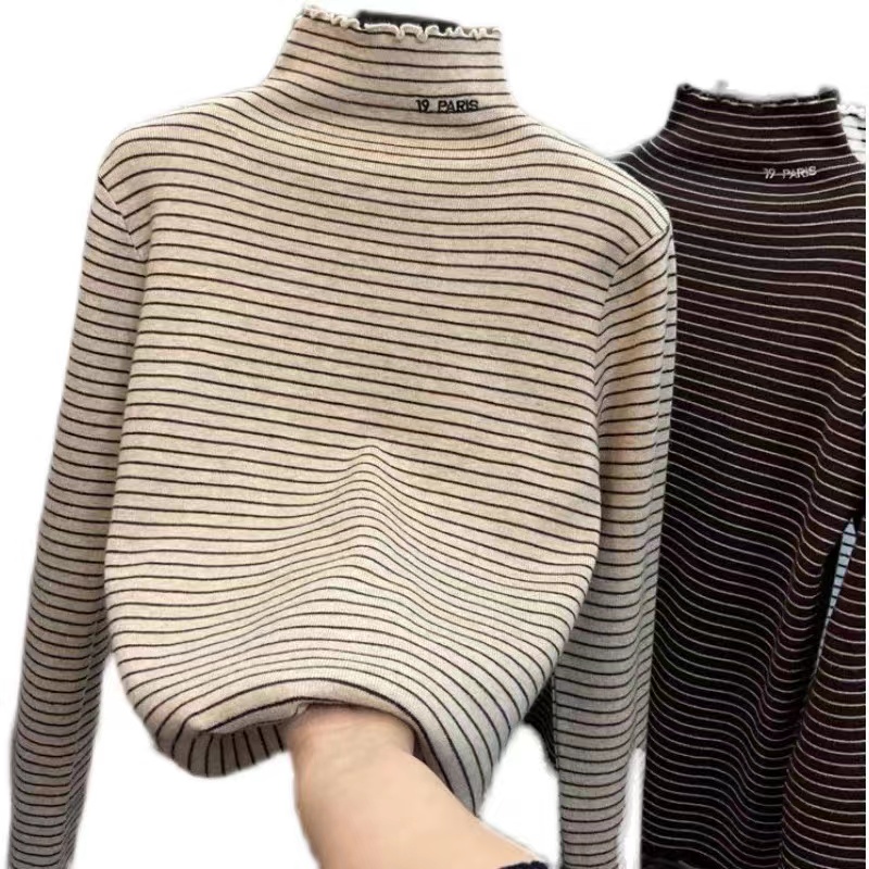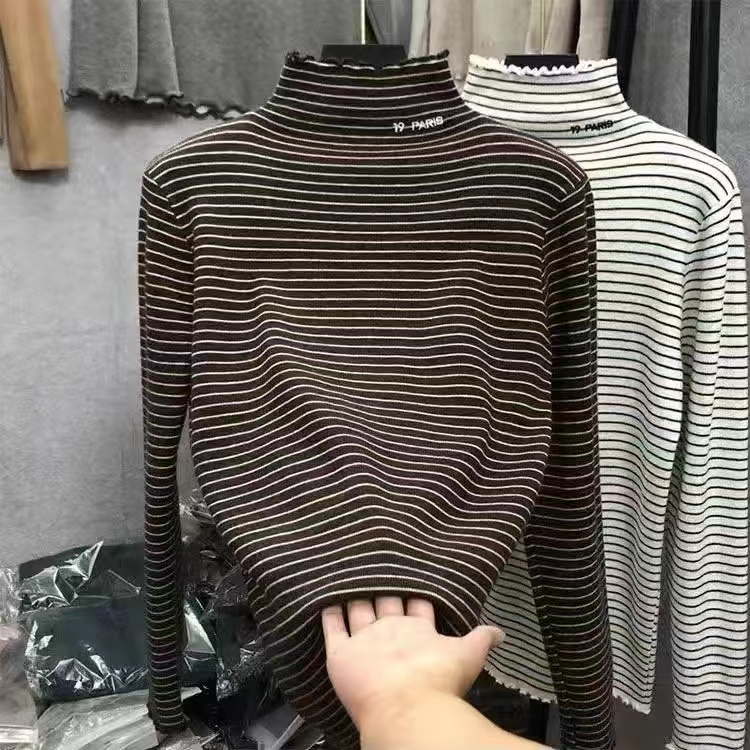 全纯棉时代女大童德绒打底衫内搭秋冬高领儿童长袖t恤修身条纹上