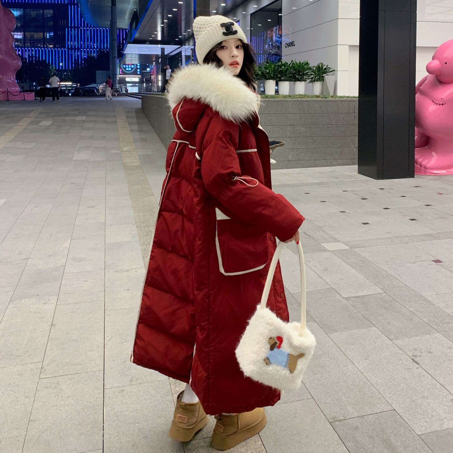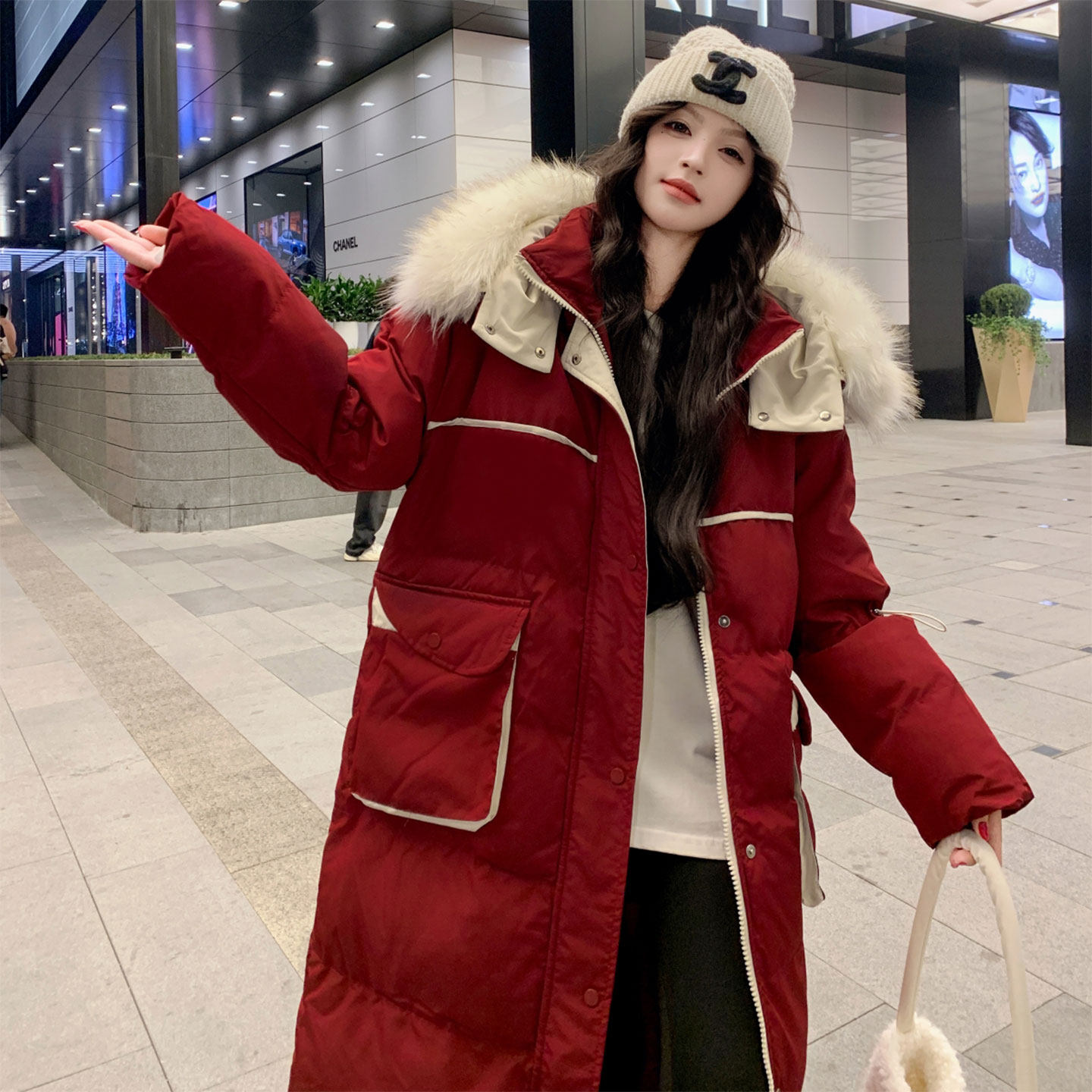特大码胖mm时尚减龄加厚保暖红色外套女2025新款冬高级感长款棉服