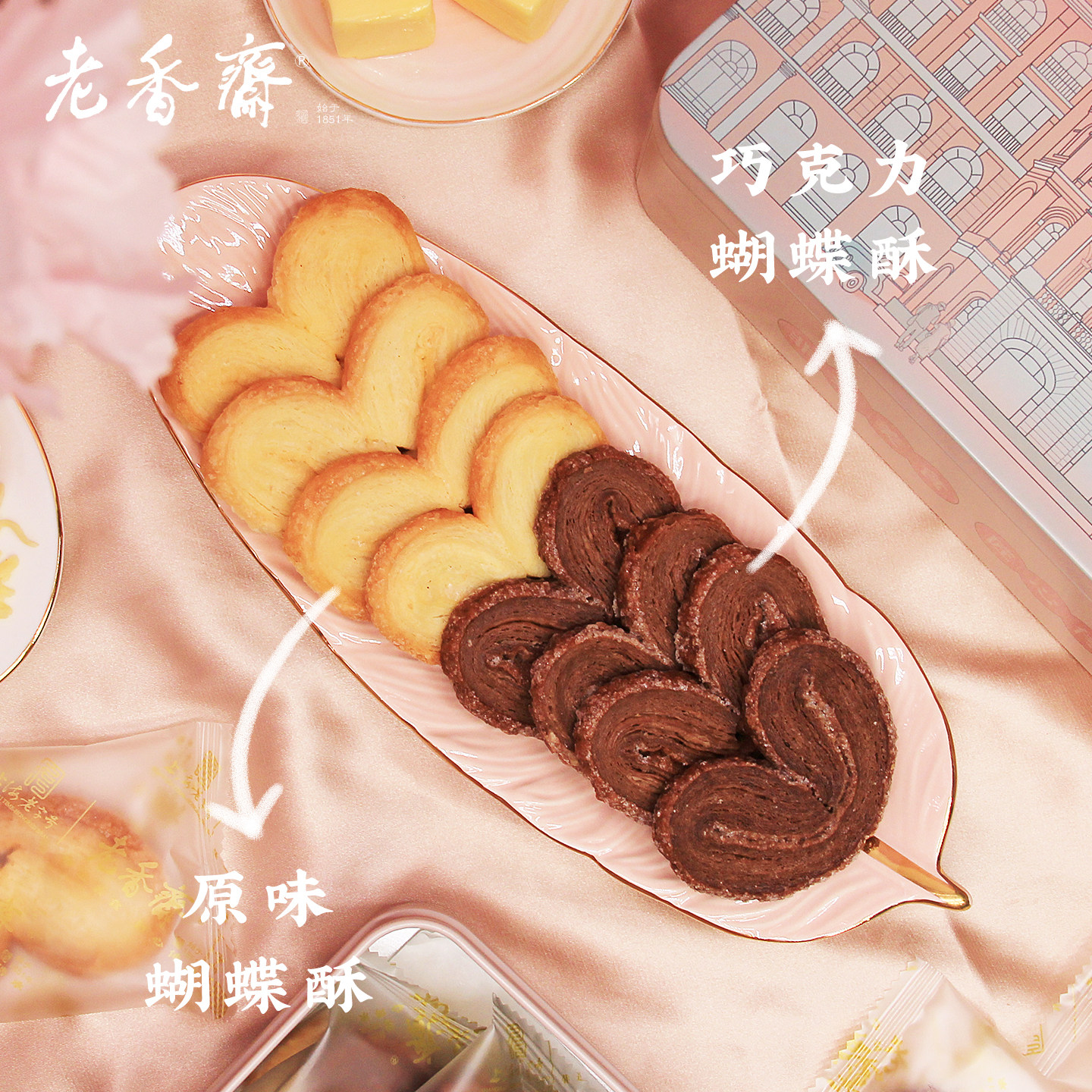 (双口味)老香斋蝴蝶酥春节年货礼盒上海特产老字号糕点零食小吃