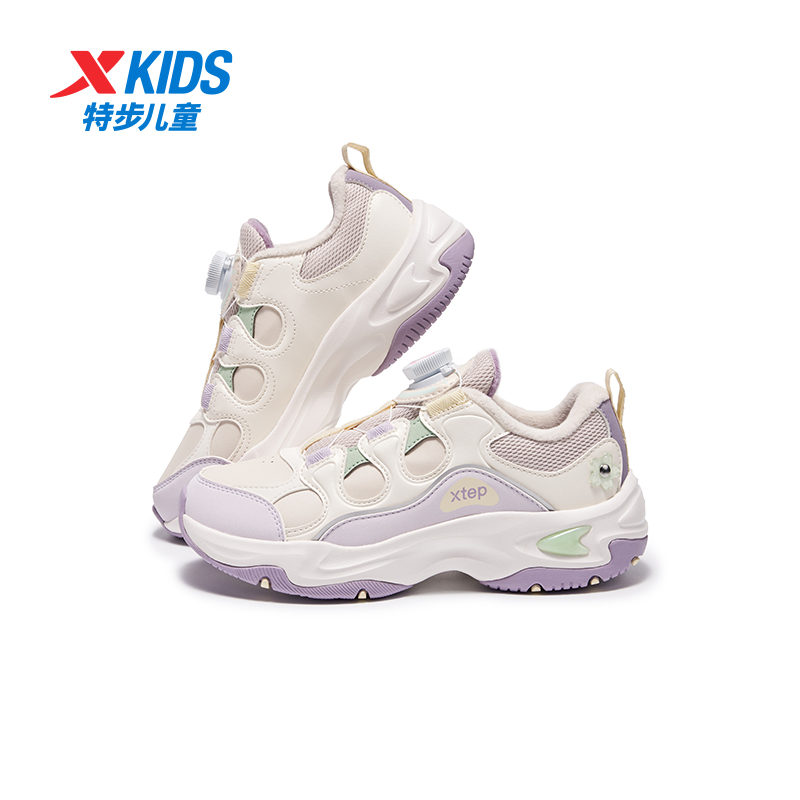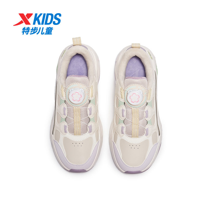 特步童鞋冬季新款女童中大童加绒保暖运动休闲旋转扣防滑耐磨棉鞋