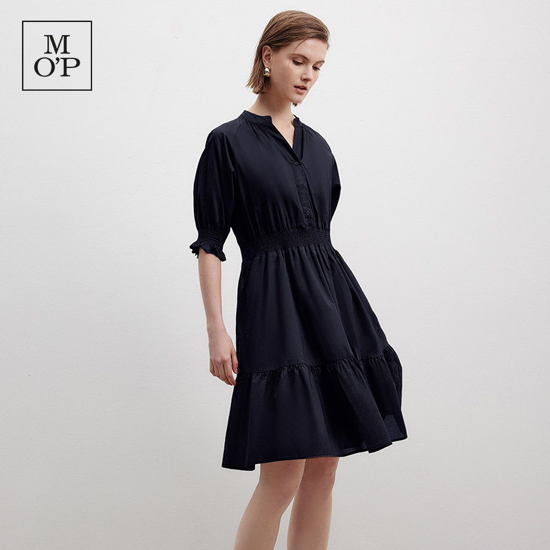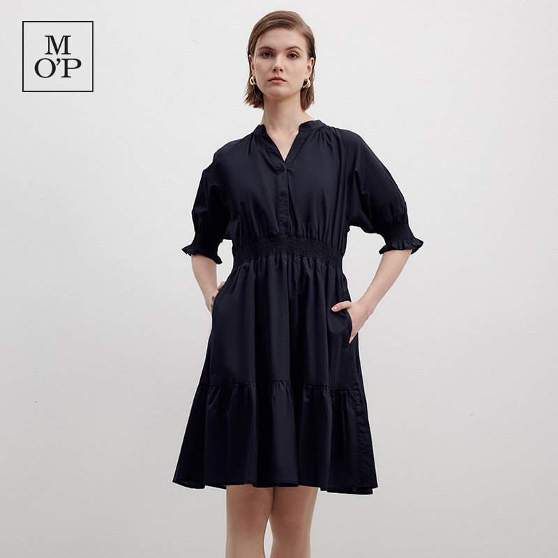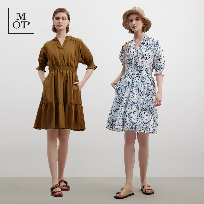 Marc O'Polo/MOP 夏季新款时尚新中式印花司马克腰气质中袖连衣裙