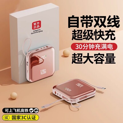 【新国标3C认证】2026新款充电宝超大容量20000毫安自带线正品旗舰店超级快充适用华为苹果专用超薄小巧便携