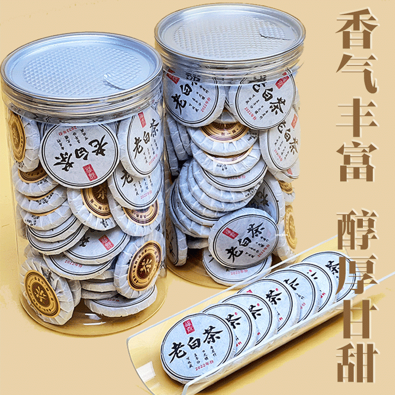 白茶福鼎老白茶寿眉紧压茶叶福建老白茶饼干茶小茶饼枣香甘甜罐装