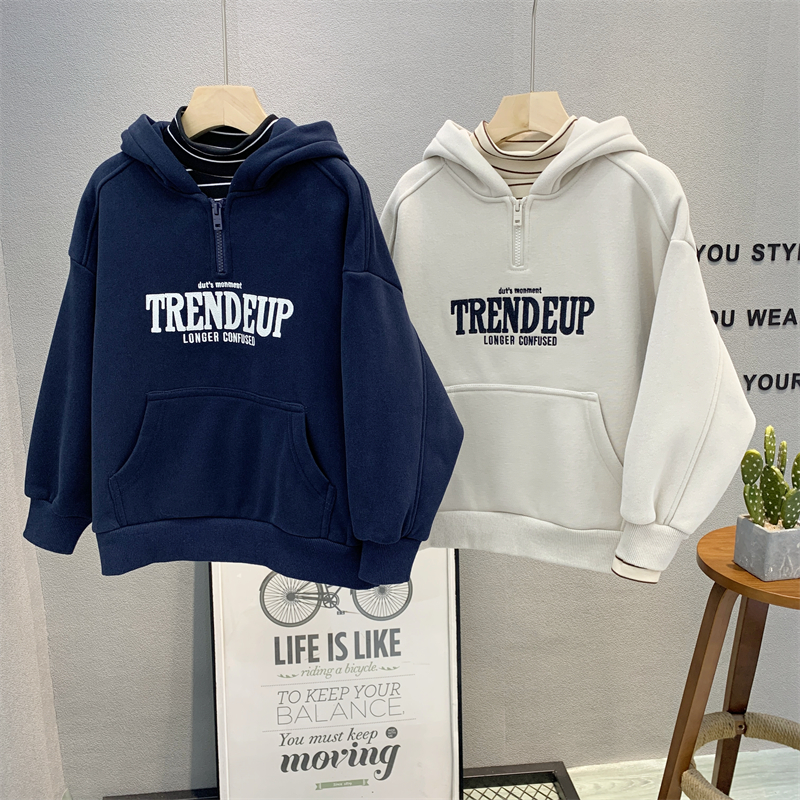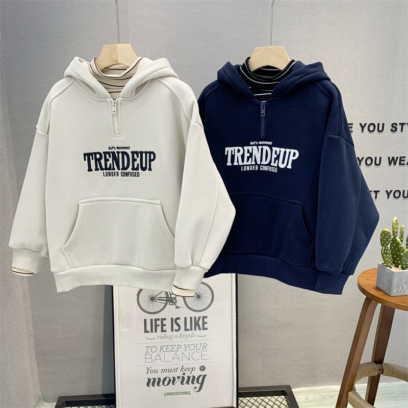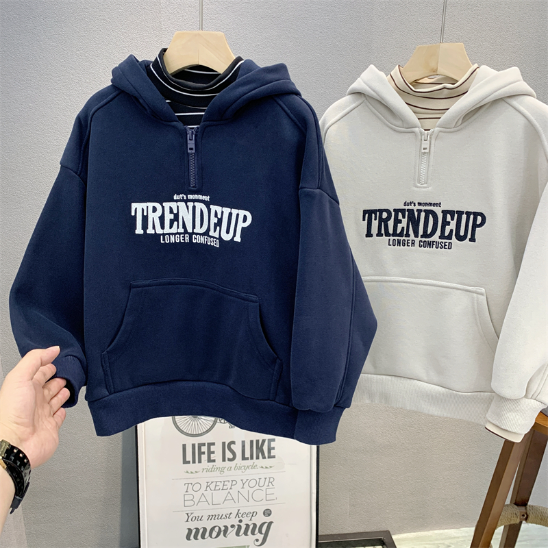 牛哆哆童装 儿童韩版加绒带帽卫衣2024冬款男女童时尚拉链衫63661