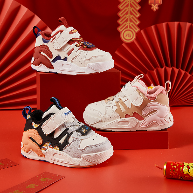 卡特兔儿童板鞋男童秋冬新款白色高帮女童加绒运动鞋跑步鞋