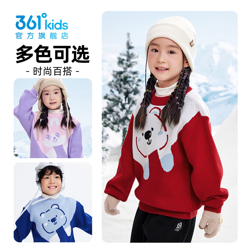 361°童装儿童圆领仿毛衫男女童2025冬季新款小童保暖毛衣上衣
