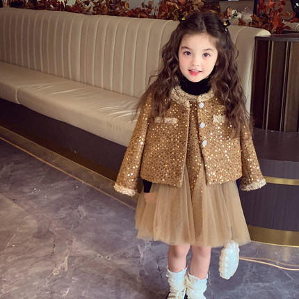 女童小香风套装秋冬2025新款小女孩粗花呢长袖外套背心裙子两件套