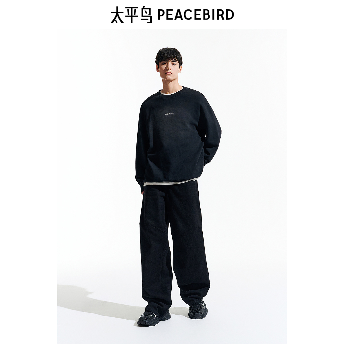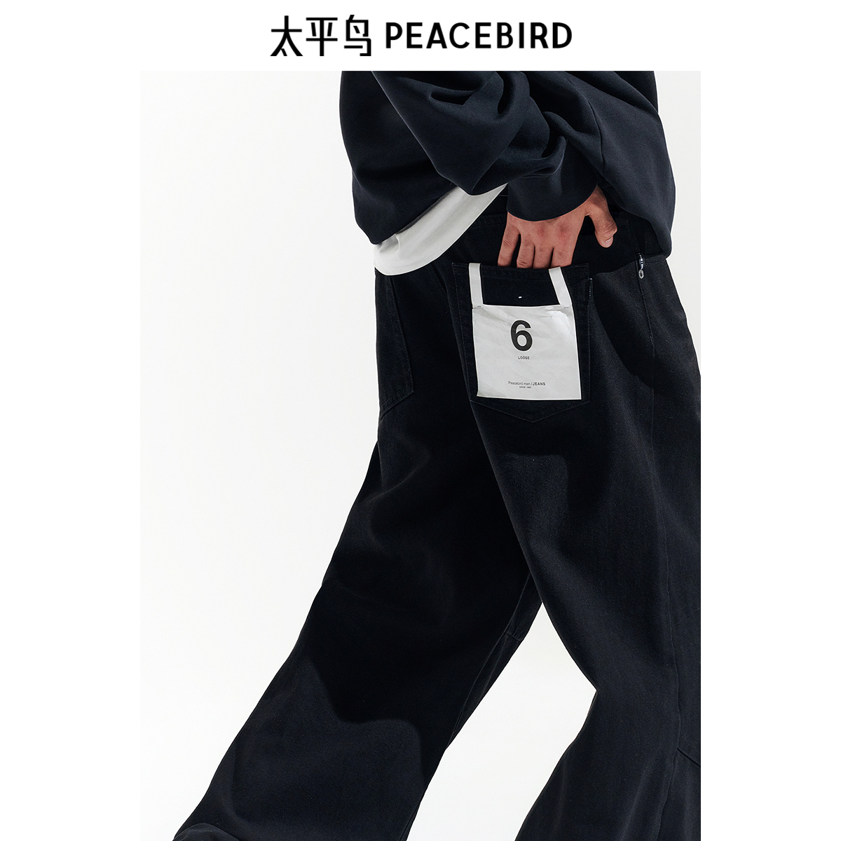 【商场同款】太平鸟男装 2024年冬季黑色宽松牛仔裤B1HAE410B