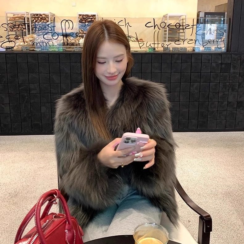 2025秋冬新款深灰绿狐狸毛皮草外套女短款宽松貉子毛毛年轻大衣女