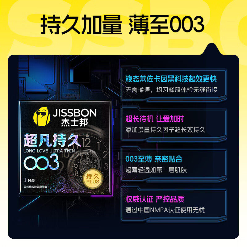 杰士邦超凡持久003超薄避孕套防早泄延时安全套男用不射情趣正品t